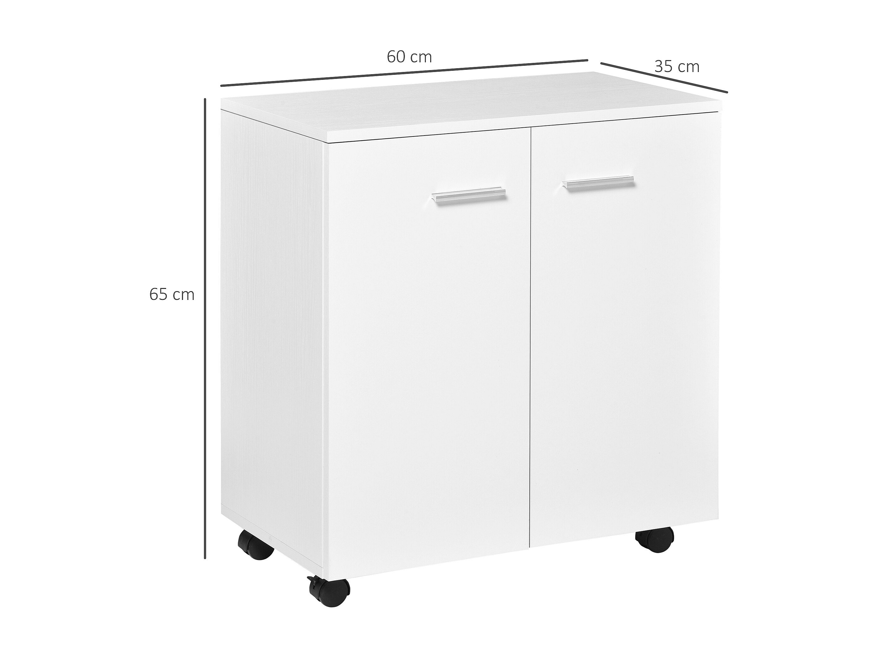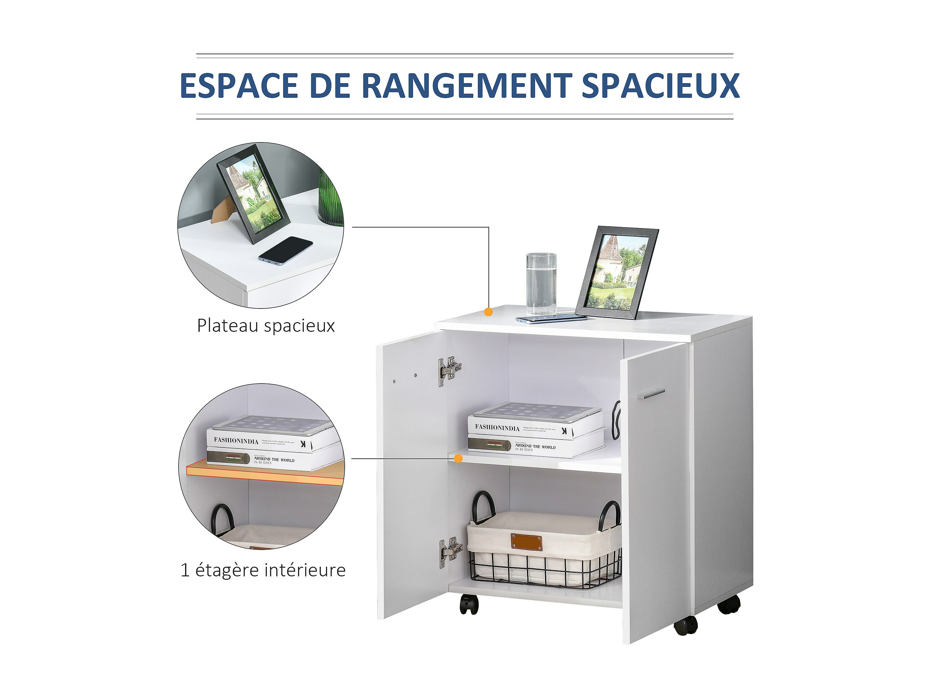 Support d'imprimante organiseur bureau caisson 2 portes avec étagère grand plateau panneaux particules blanc