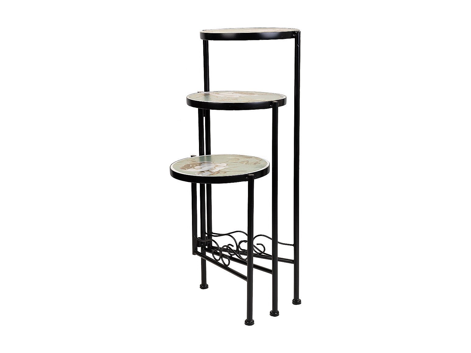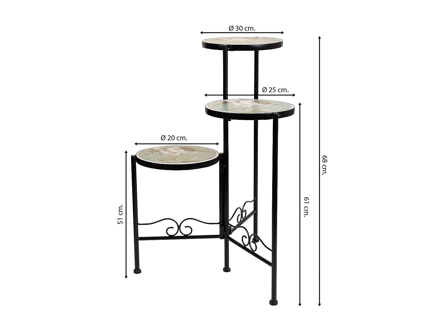 Support en mosaïque et fer forgé noir d30x68h-d25x61h-d20x51h