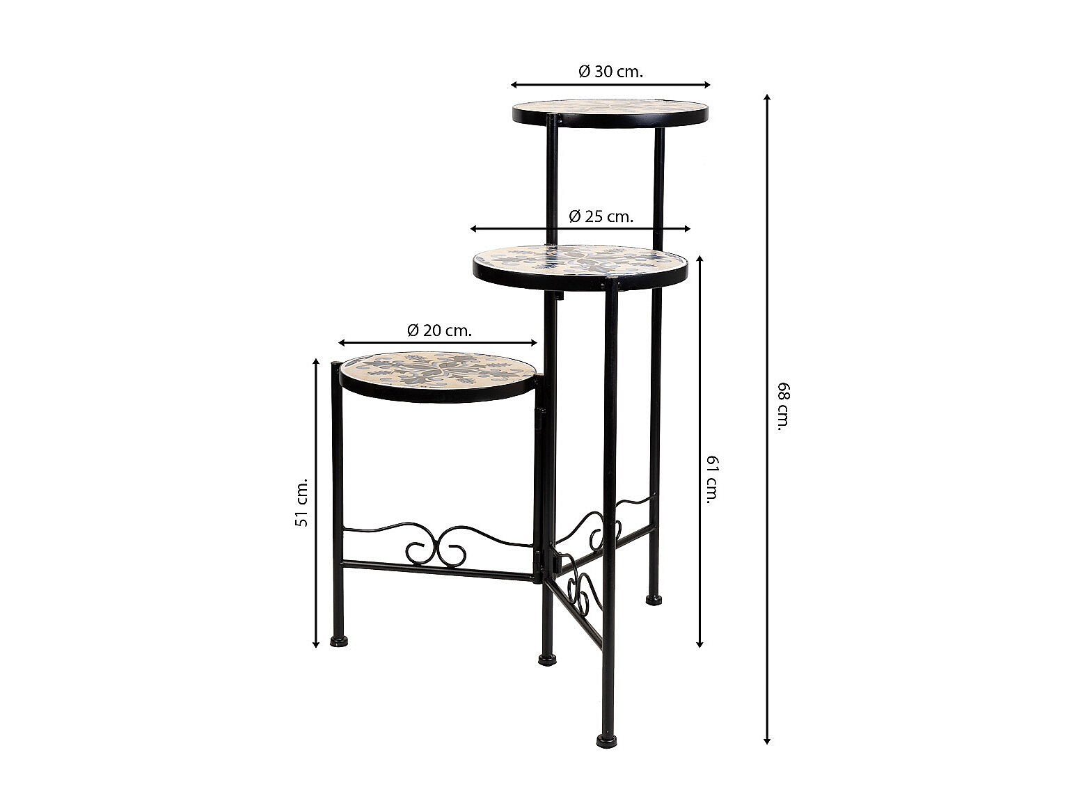 Support en mosaïque et fer forgé noir d30x68h-d25x61h-d20x51h