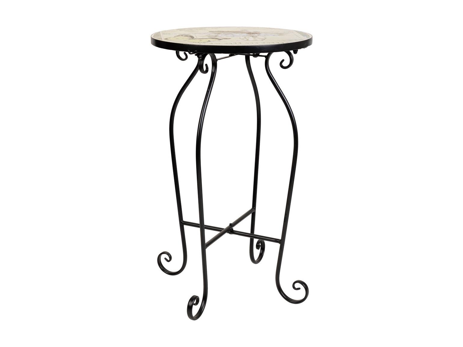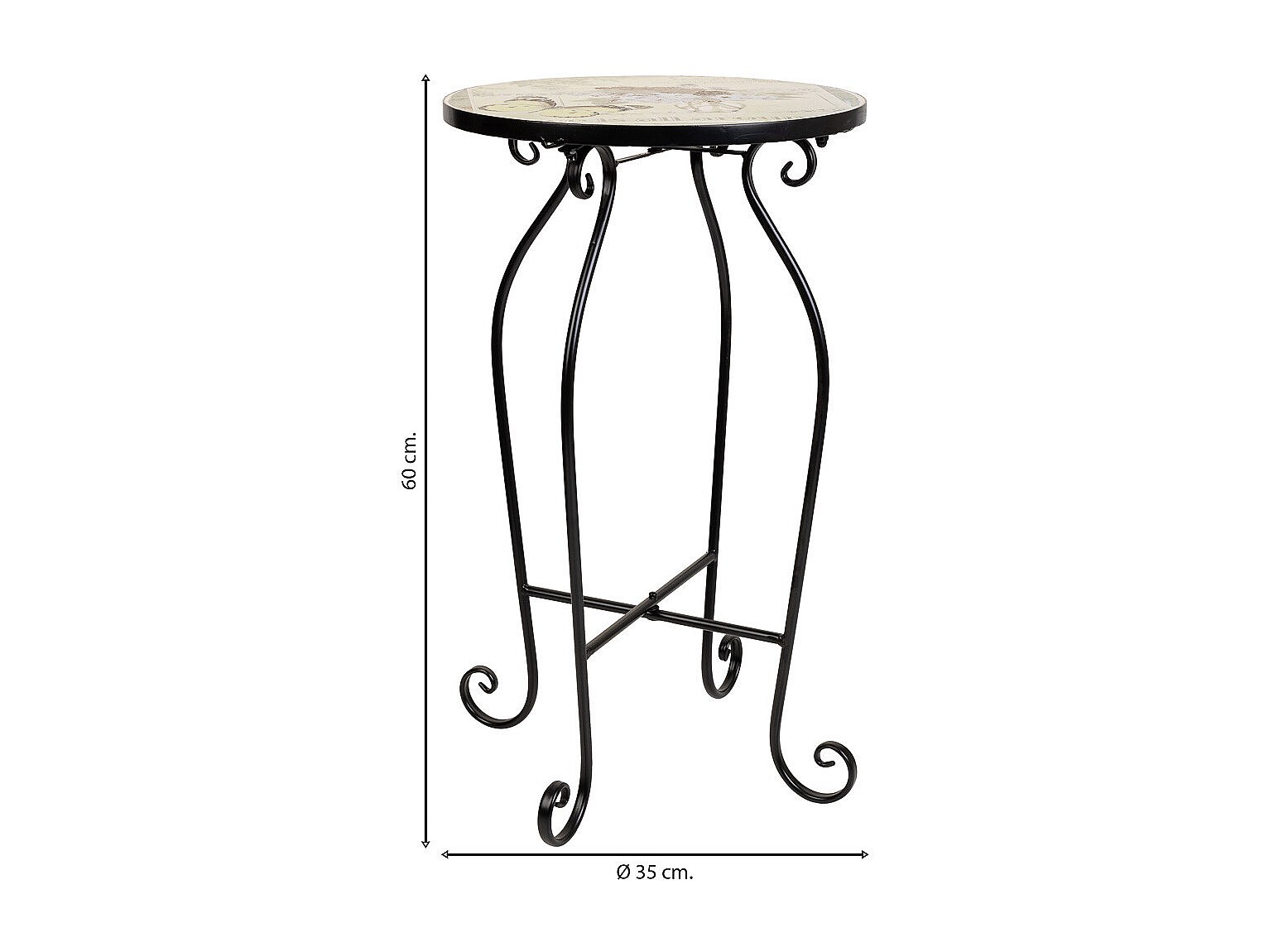 Support en mosaïque et fer forgé noir d35x60h