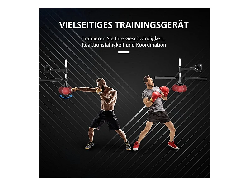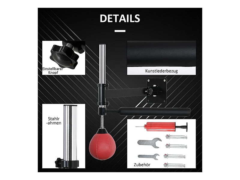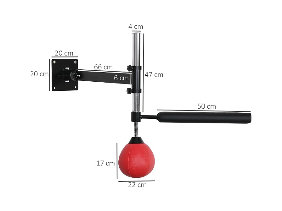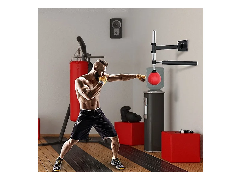 Support mural de boxe réglable avec barre pivotante 360°, similicuir, rouge (79x72x20 cm)