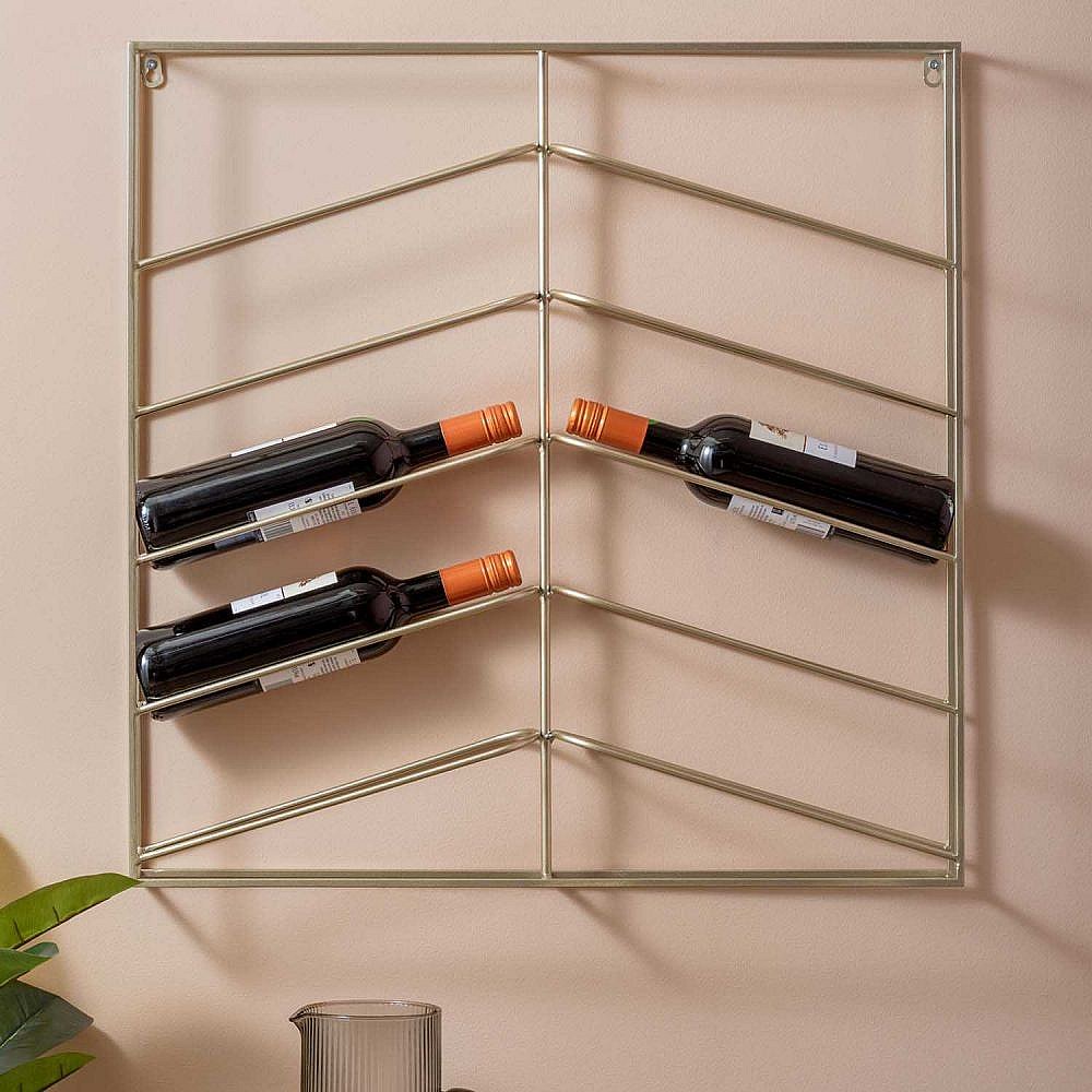 Casier à vin mural pour 9 bouteilles Doré Fer
