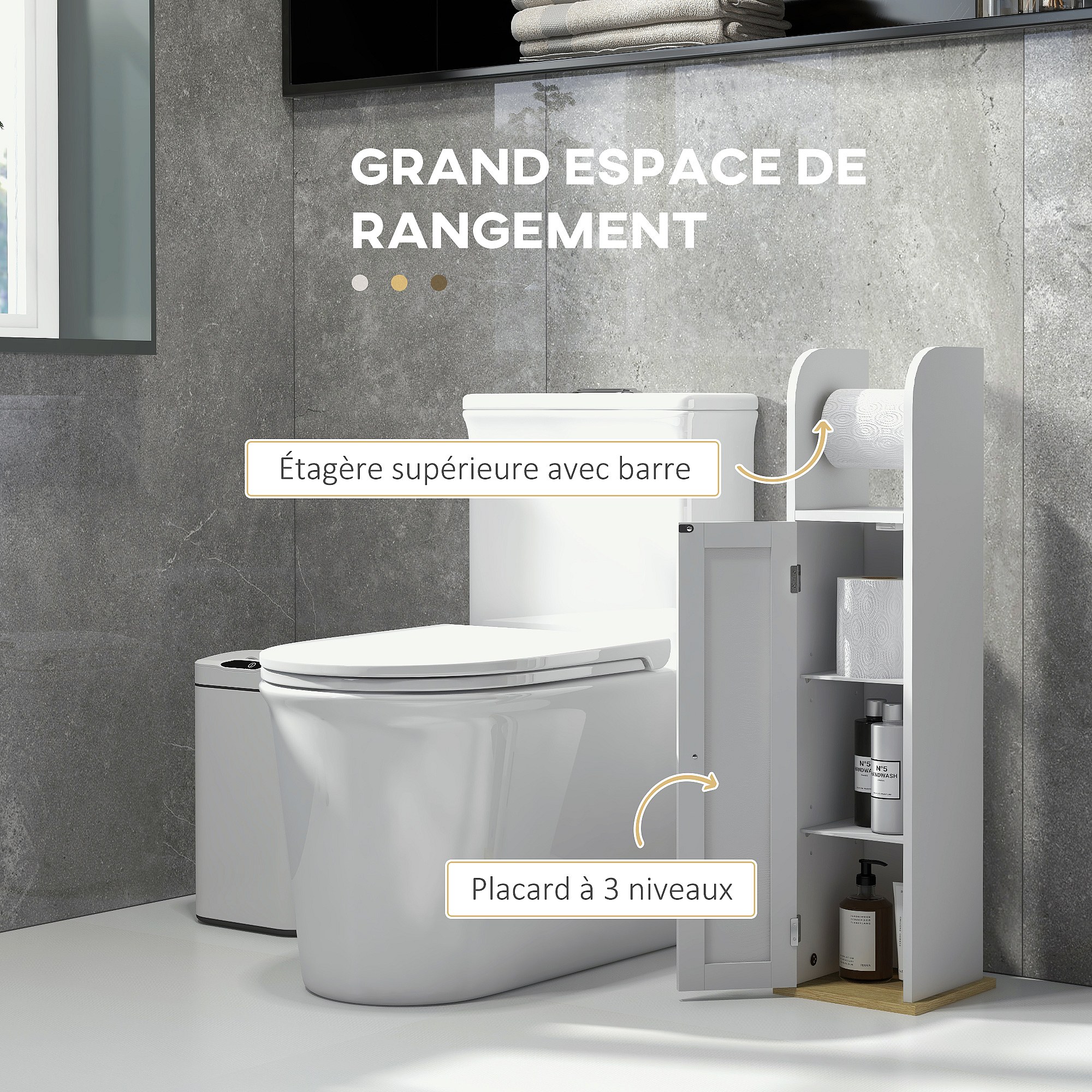 Support Papier Toilette Armoir Porte-papier Toilettes Porte Brosse Wc En Bois - Blanc, Frg135-w