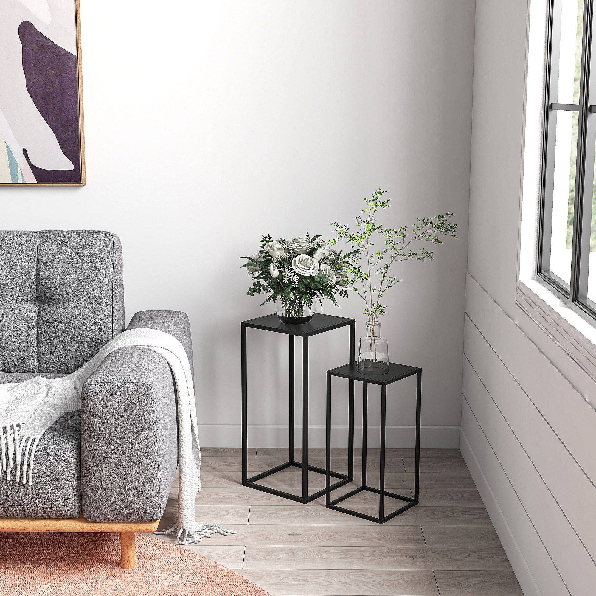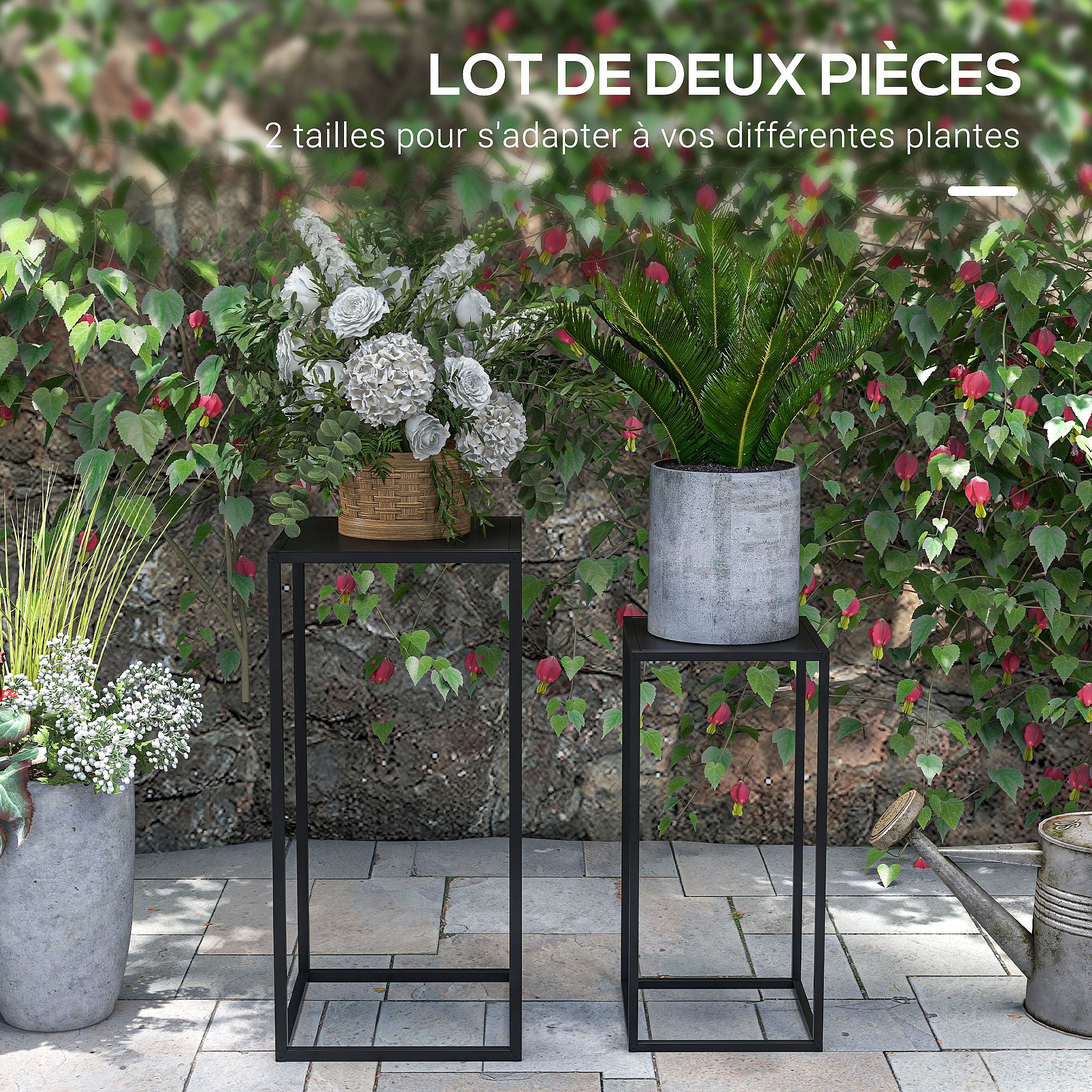Support pots de fleurs 2 pièces - lot de 2 étagères à fleurs - portes plantes - acier époxy noir