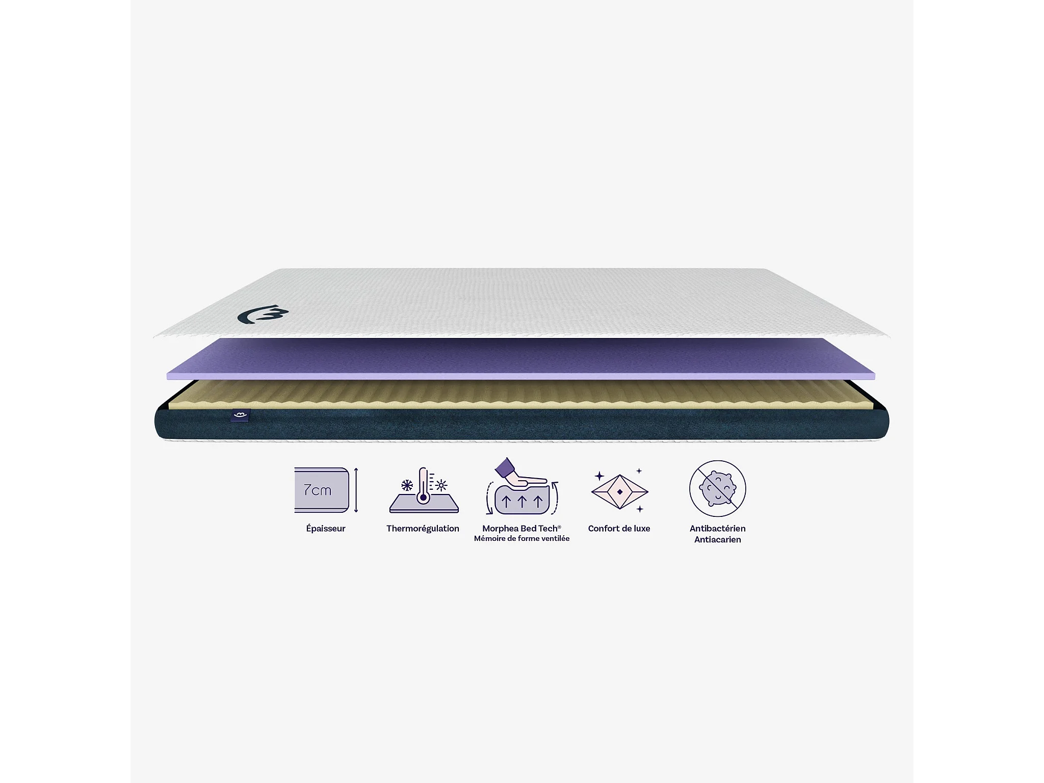 Surmatelas mémoire de forme 200x200 épais 7cm