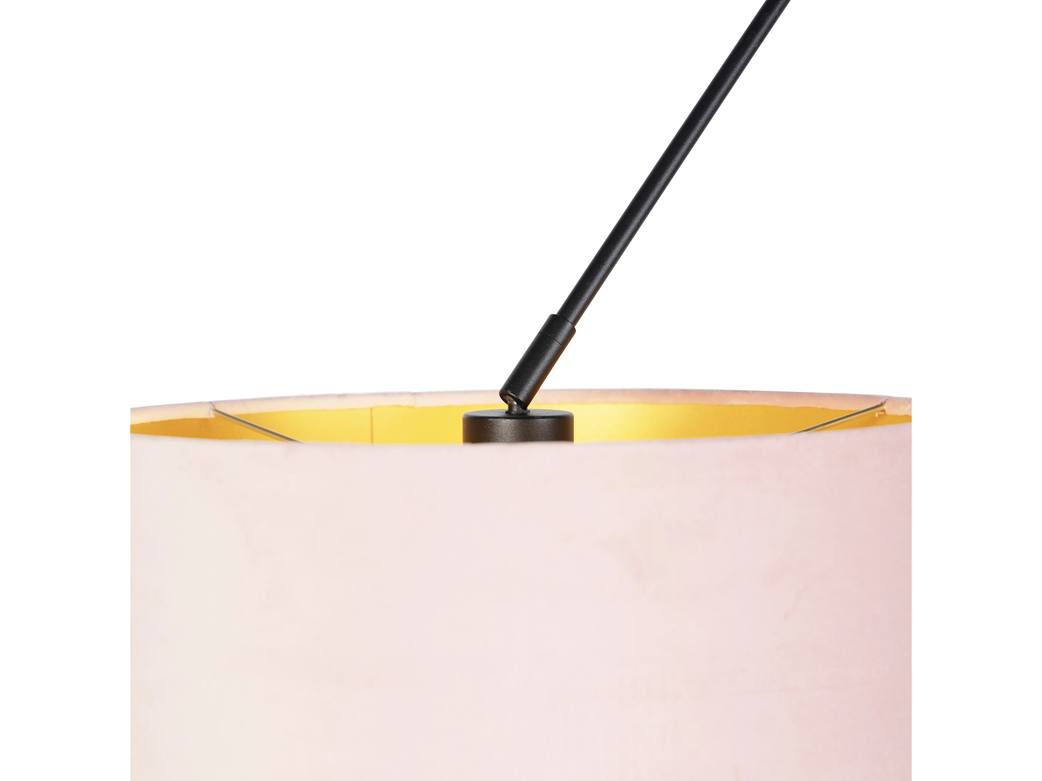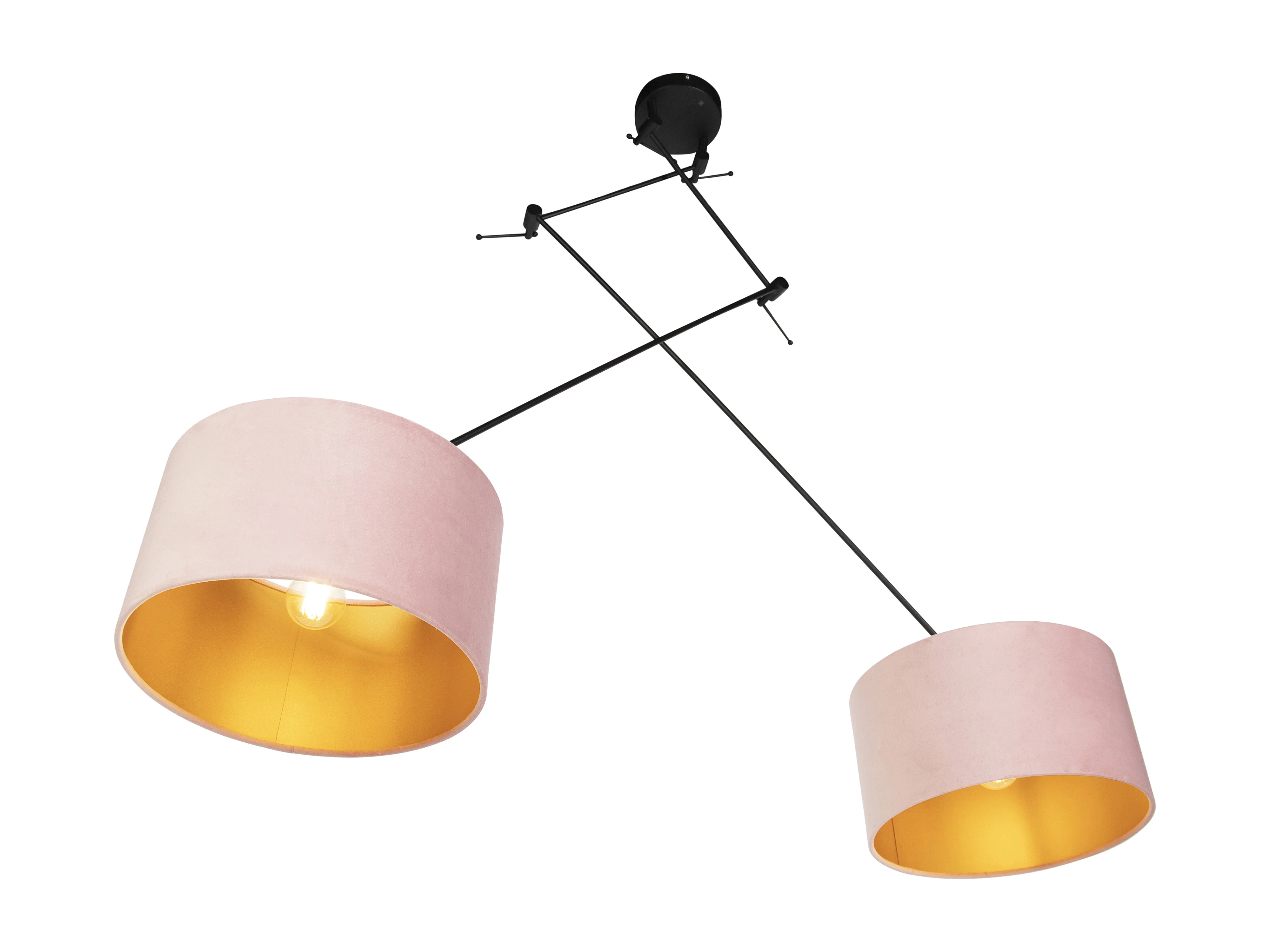 Suspension noire avec abat-jour en velours rose et or 35 cm 2 lumières - Blitz