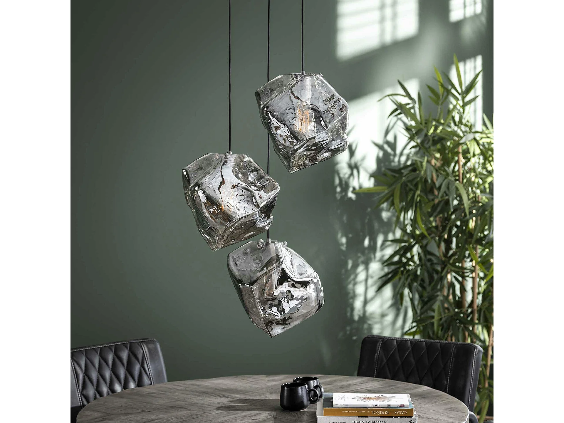 Suspension contemporaine 3 lampes effet glaçon finition chromée NIAGARA