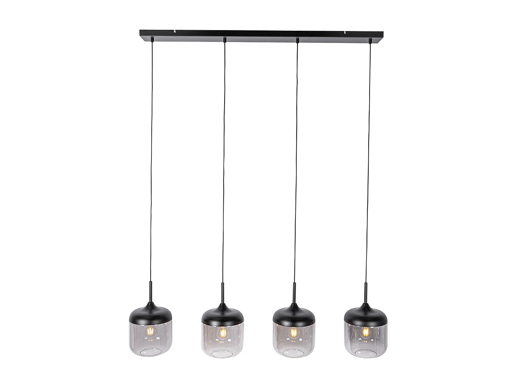 Suspension design noire avec verre doré et fumé 4 lumières - Kyan