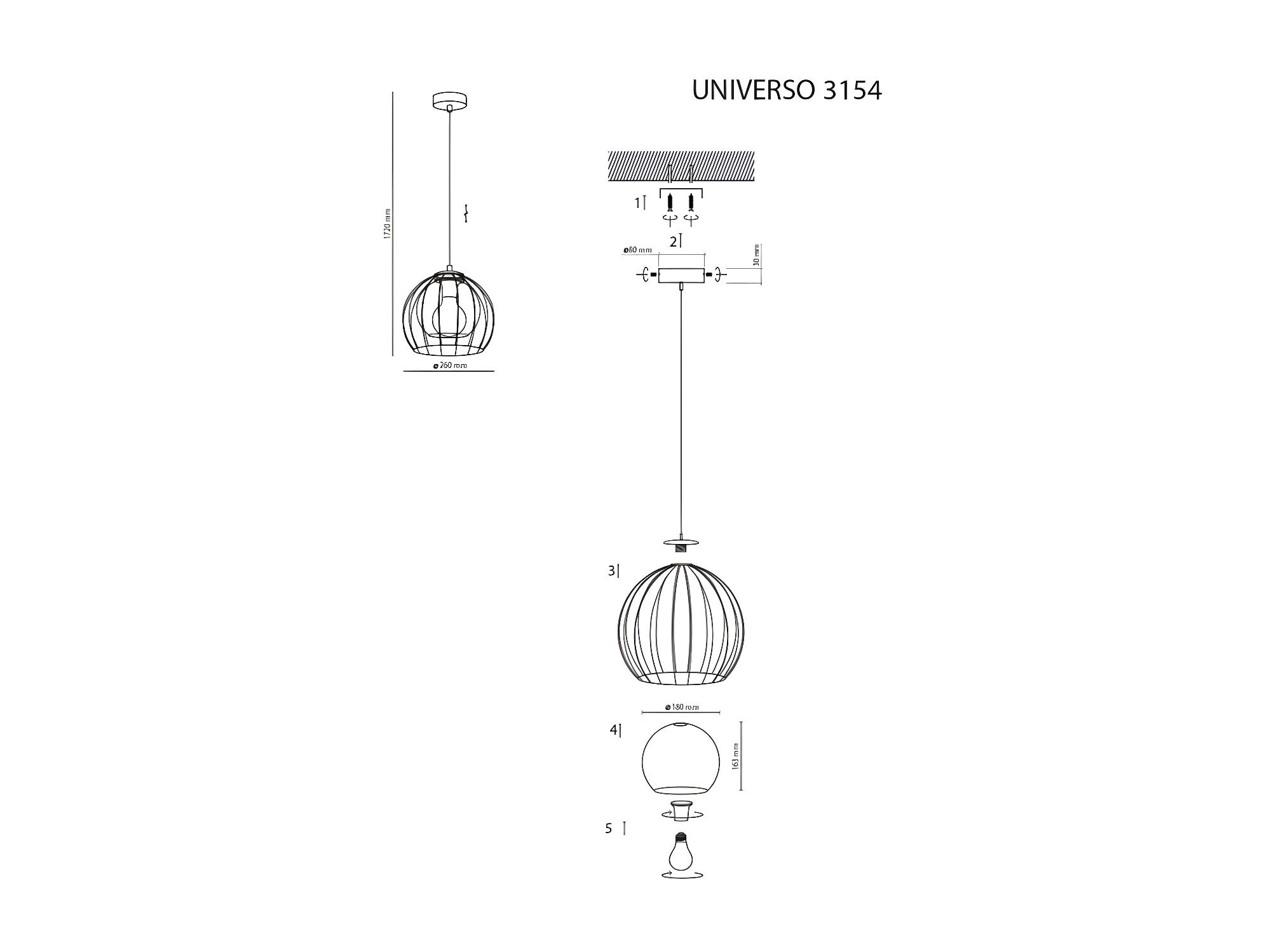 Suspension en verre et métal noir-diam26 -h172 cm - modèle UNIVERSO de TK LIGHTING