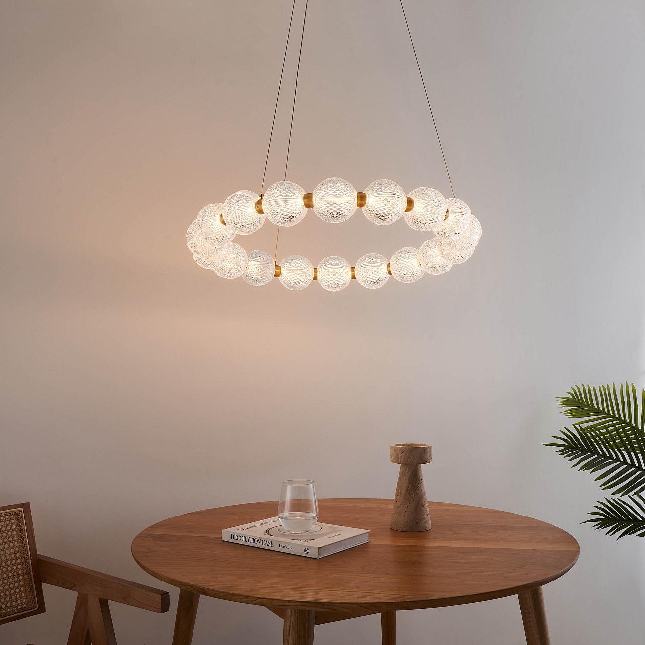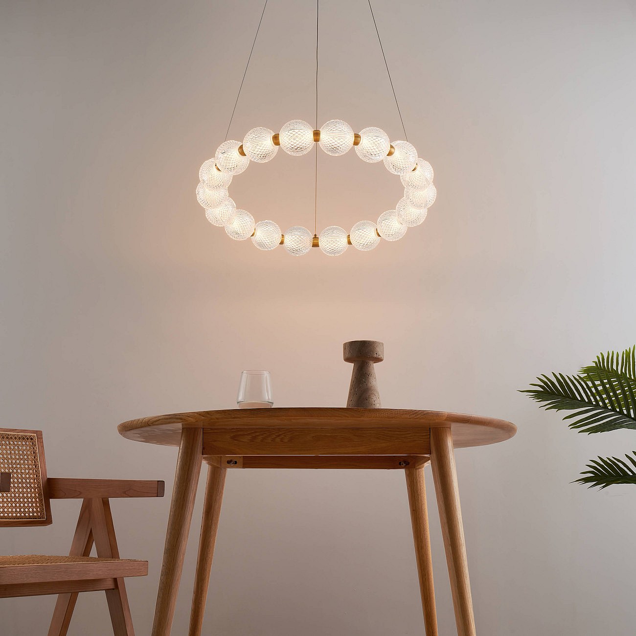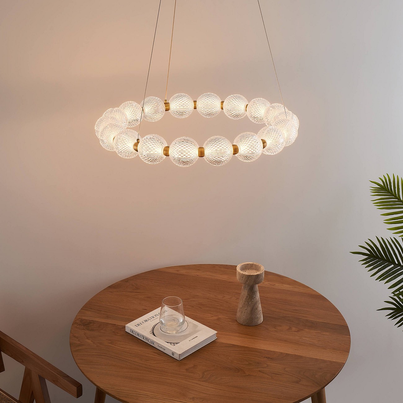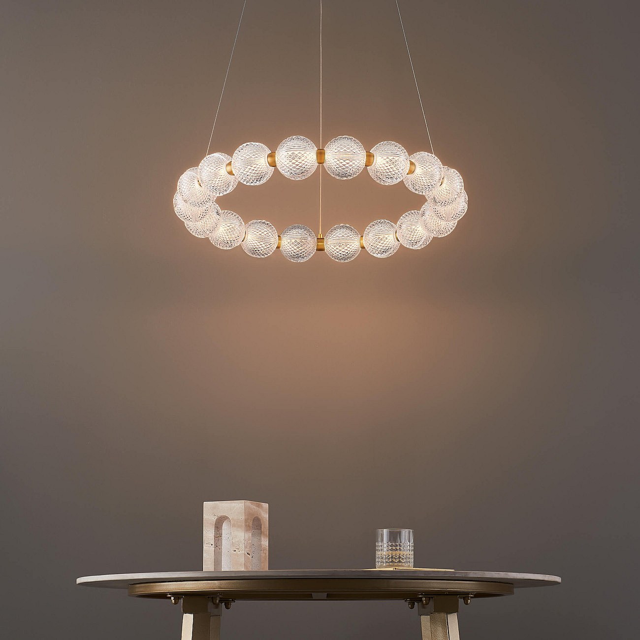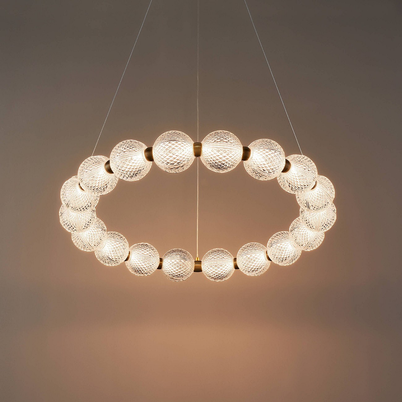 Suspension LED dorée multi sphères transparentes 57 cm - Roseli