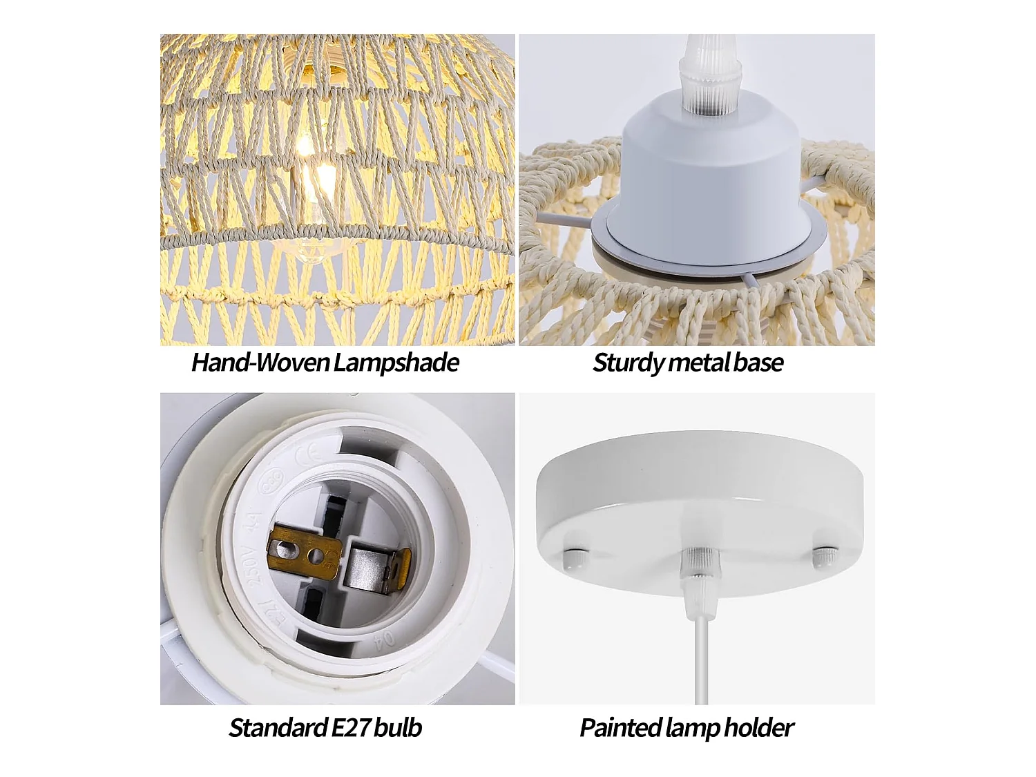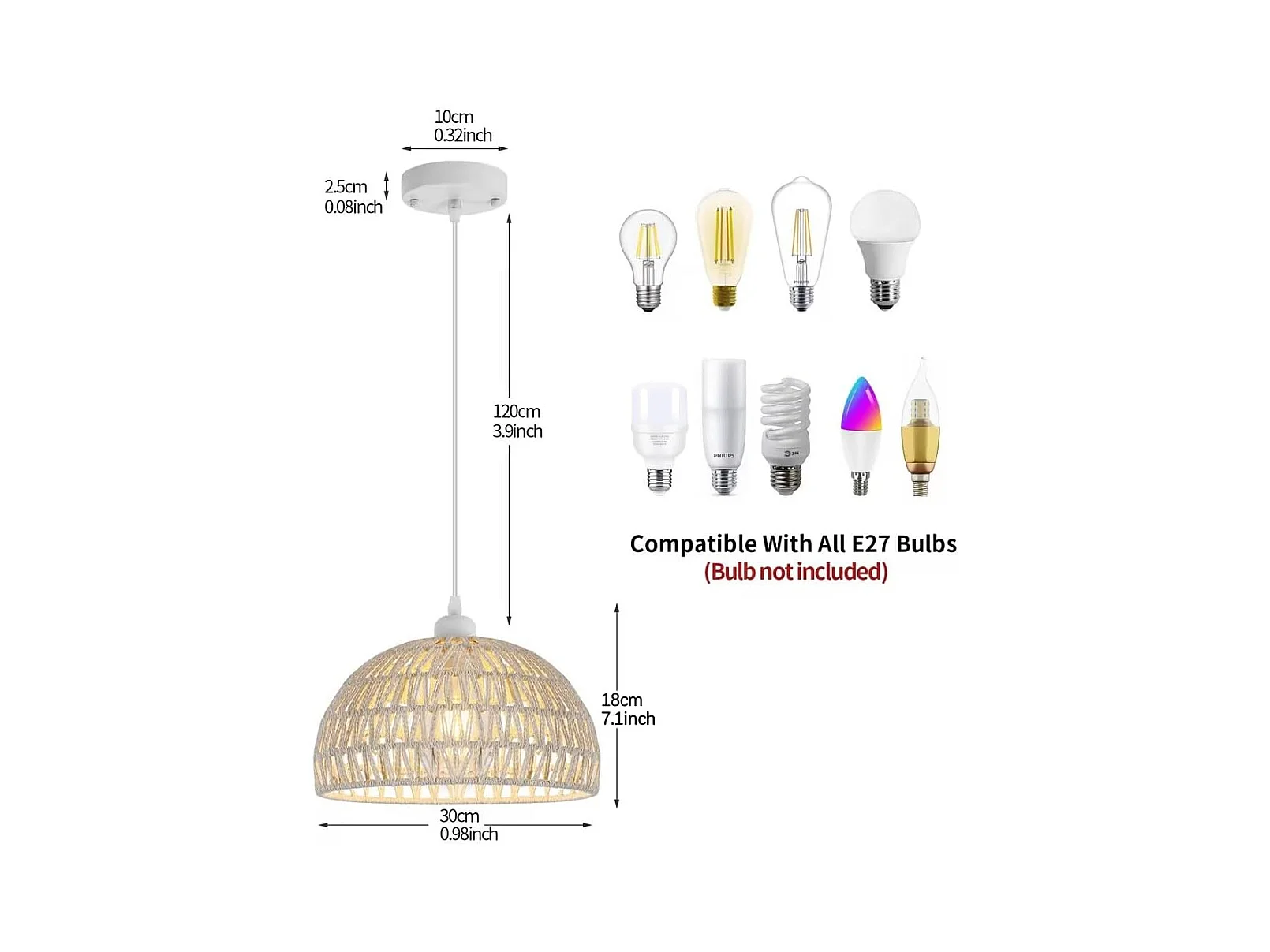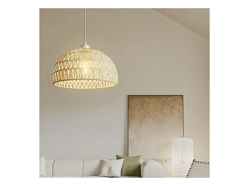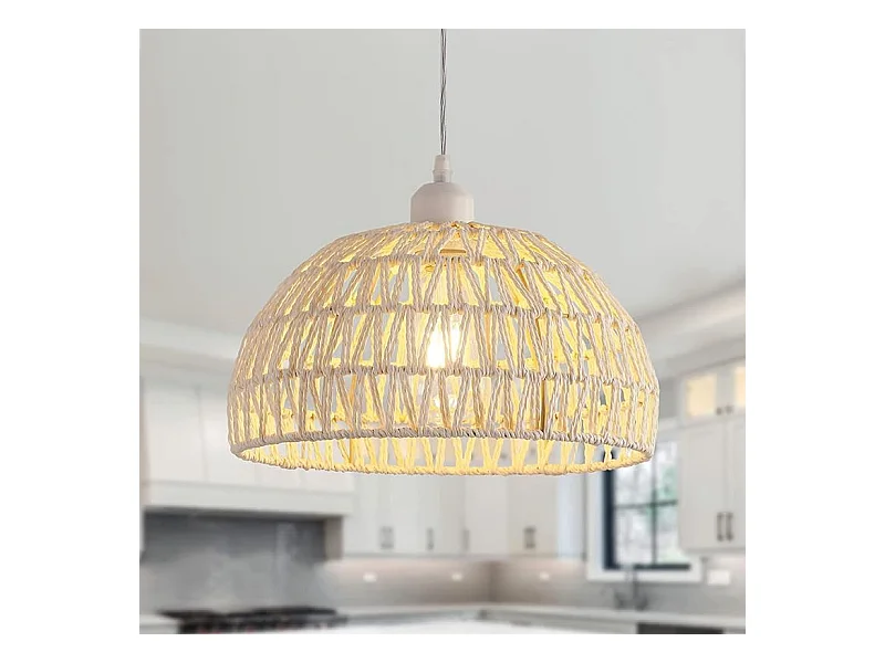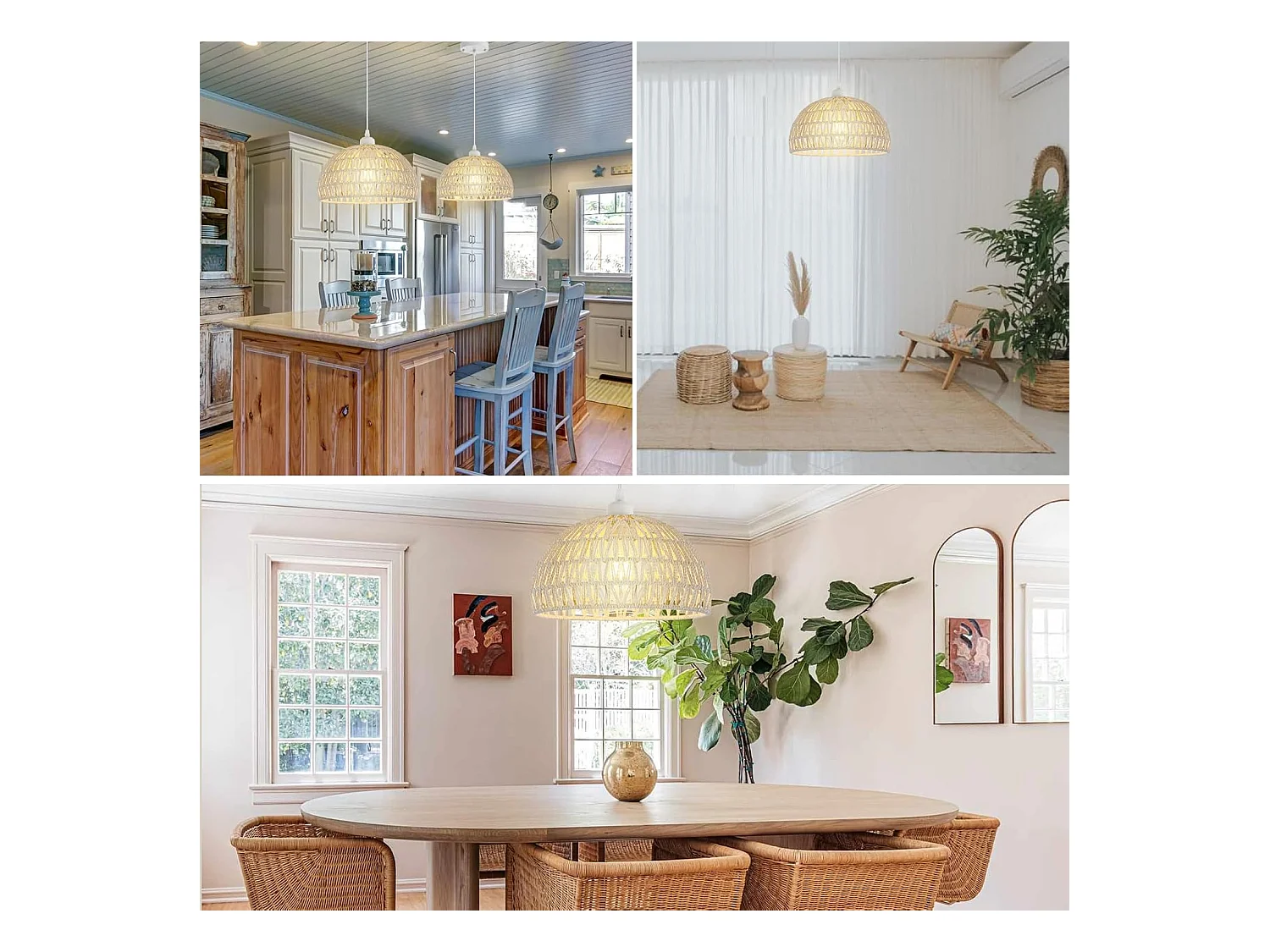 Suspension Luminaire en Rotin Moderne Lustre Abat-jour en Rotin Naturel Lampe Suspendue Hauteur Réglable E27 Suspension pour Cuisine Chambre Salon