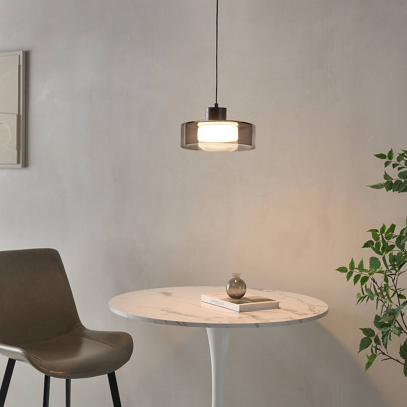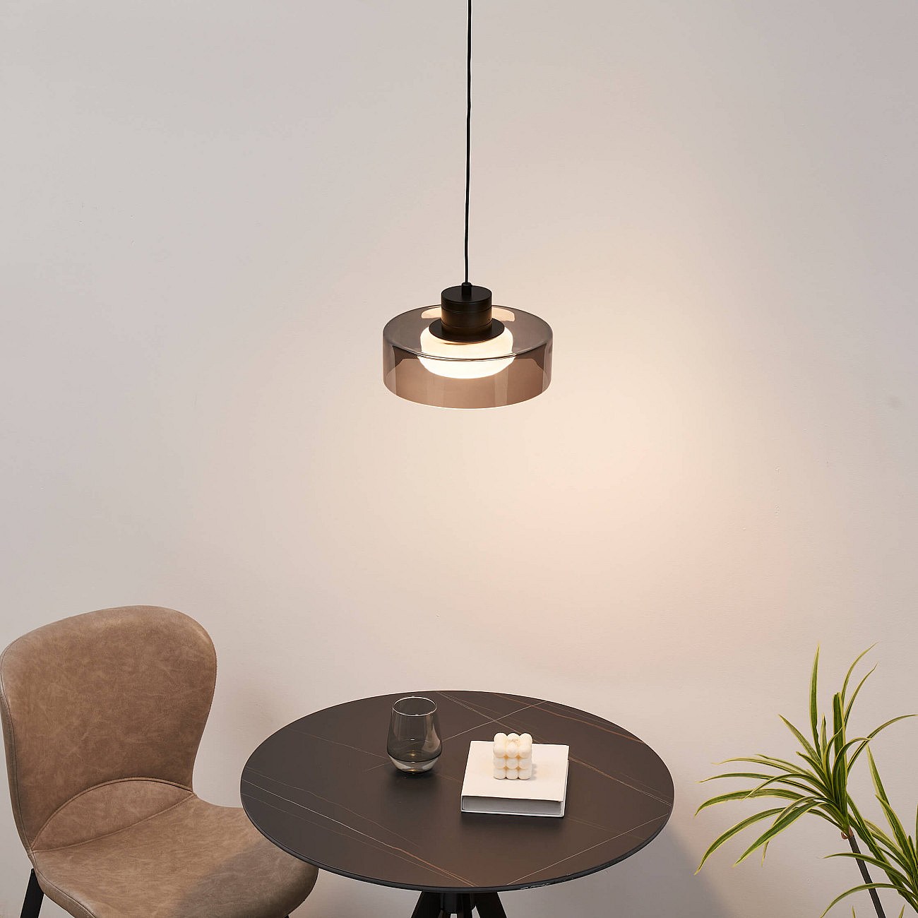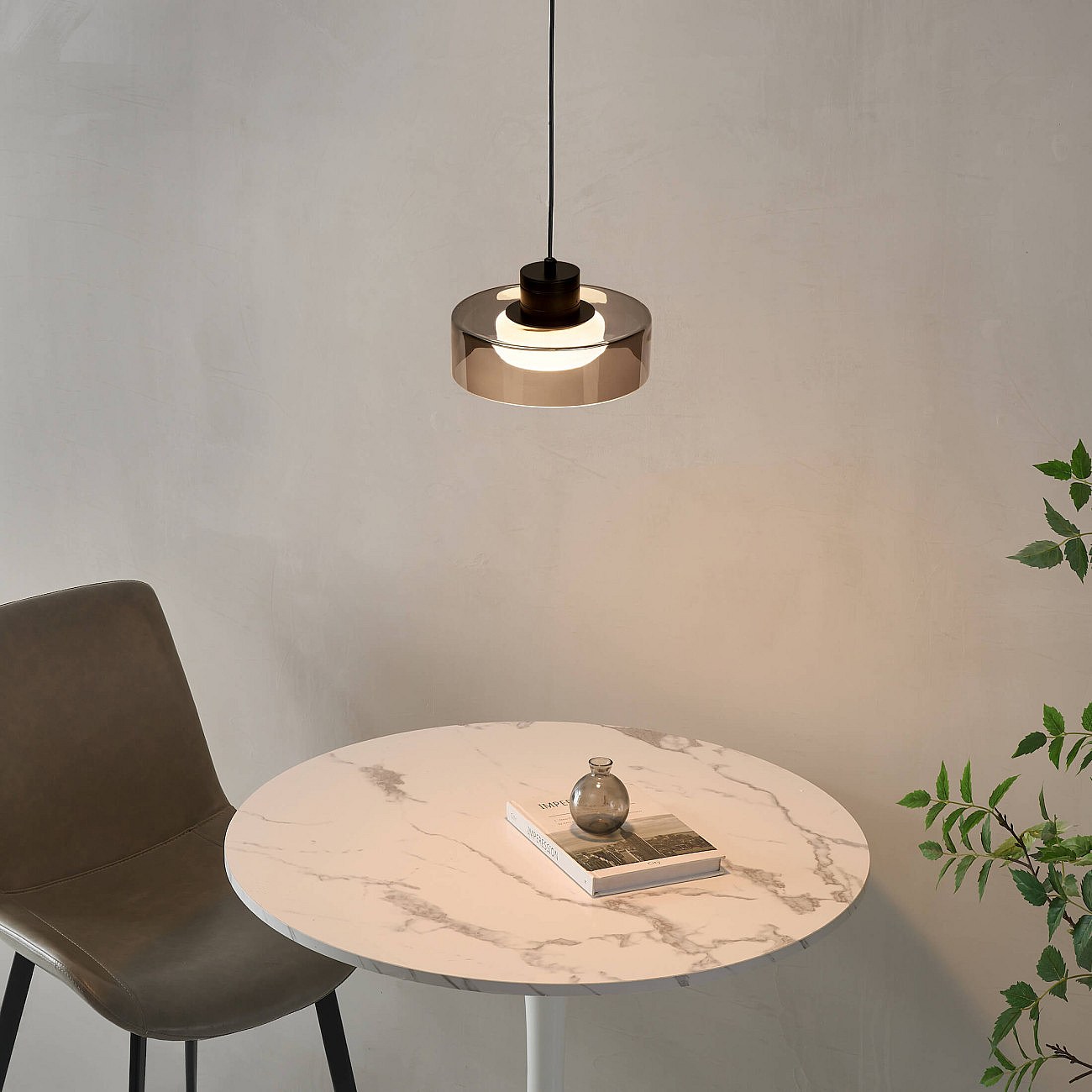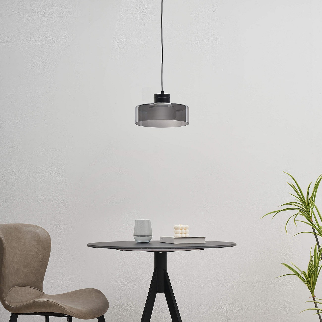Suspension noire minimaliste verre fumé et LED intégrée - Valdo