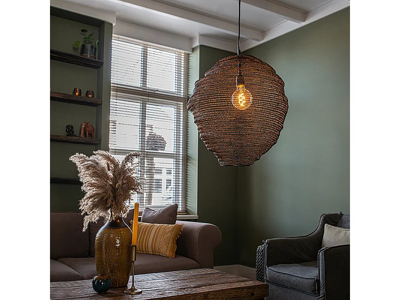 Suspension rustique Kavana avec abat-jour en corde et métal 1xE27 ø30cm