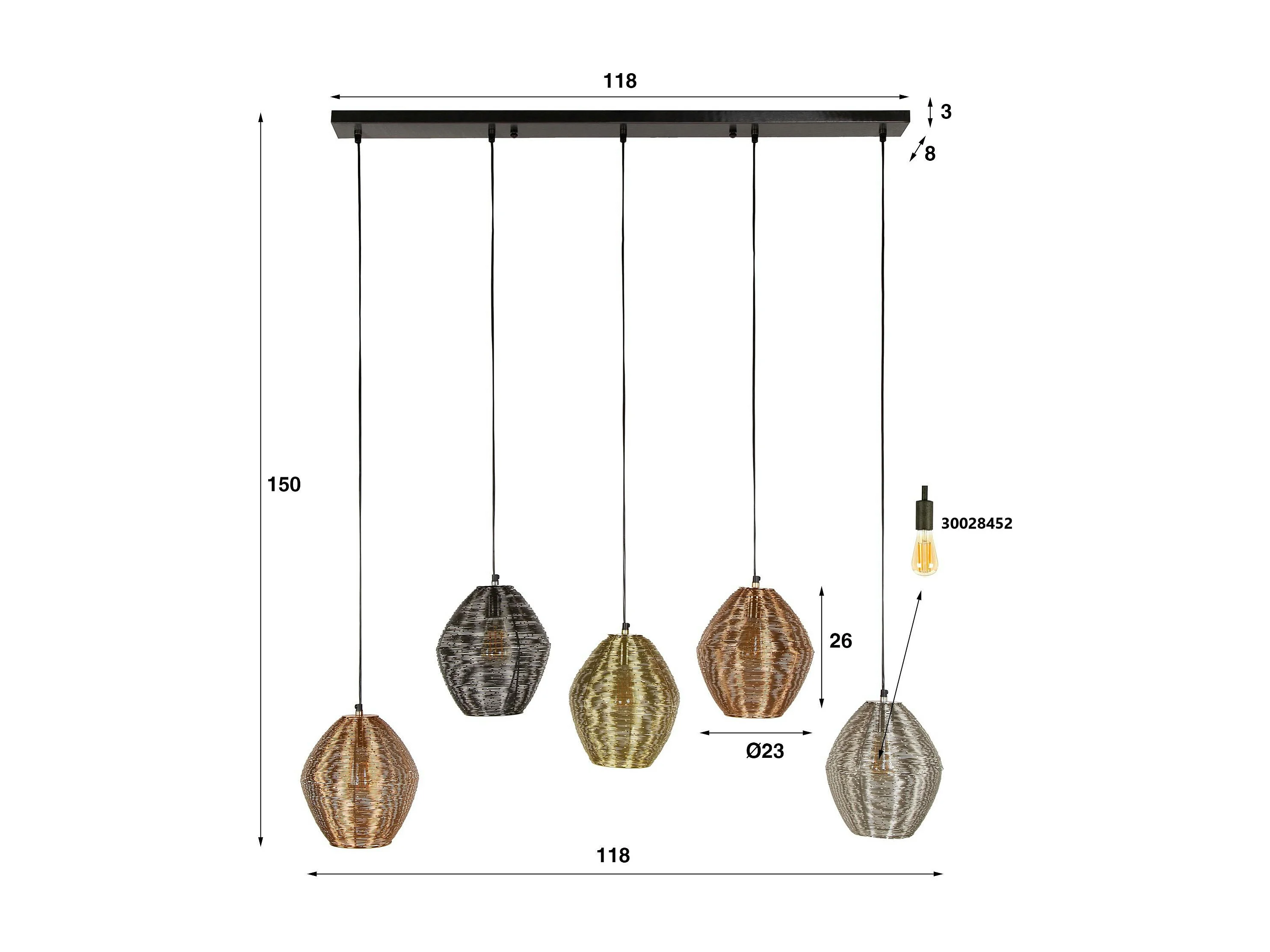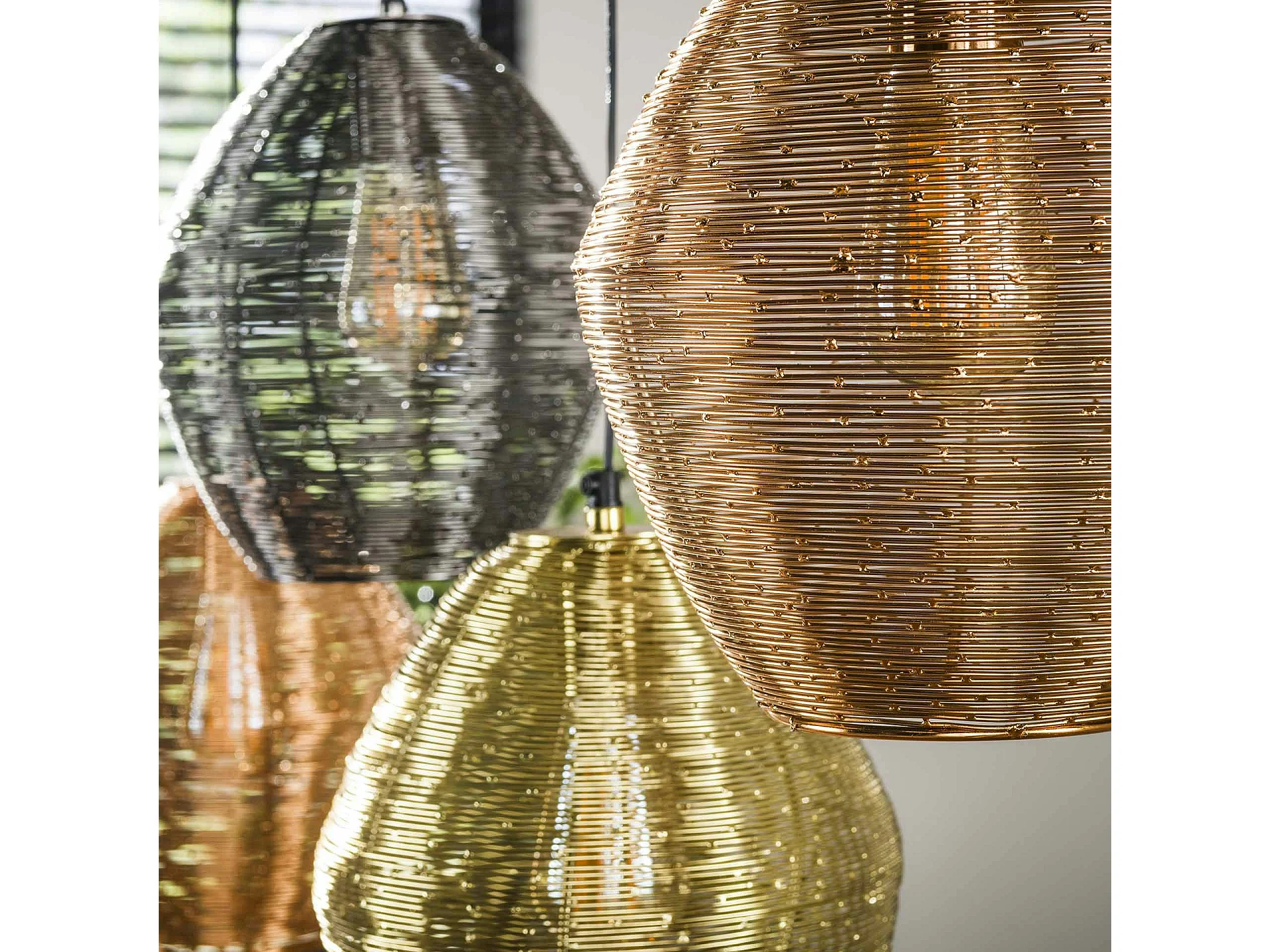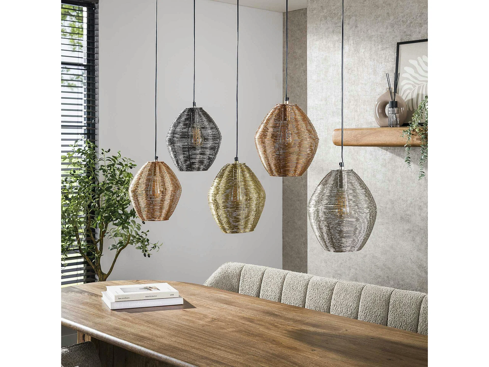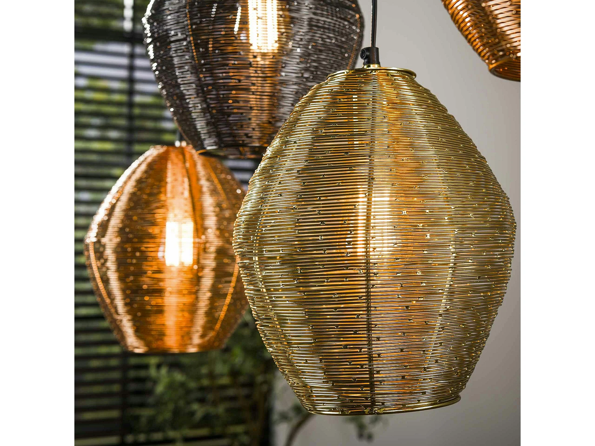 Suspension vintage filaire avec 5 abat-jour à hauteur réglable RALF