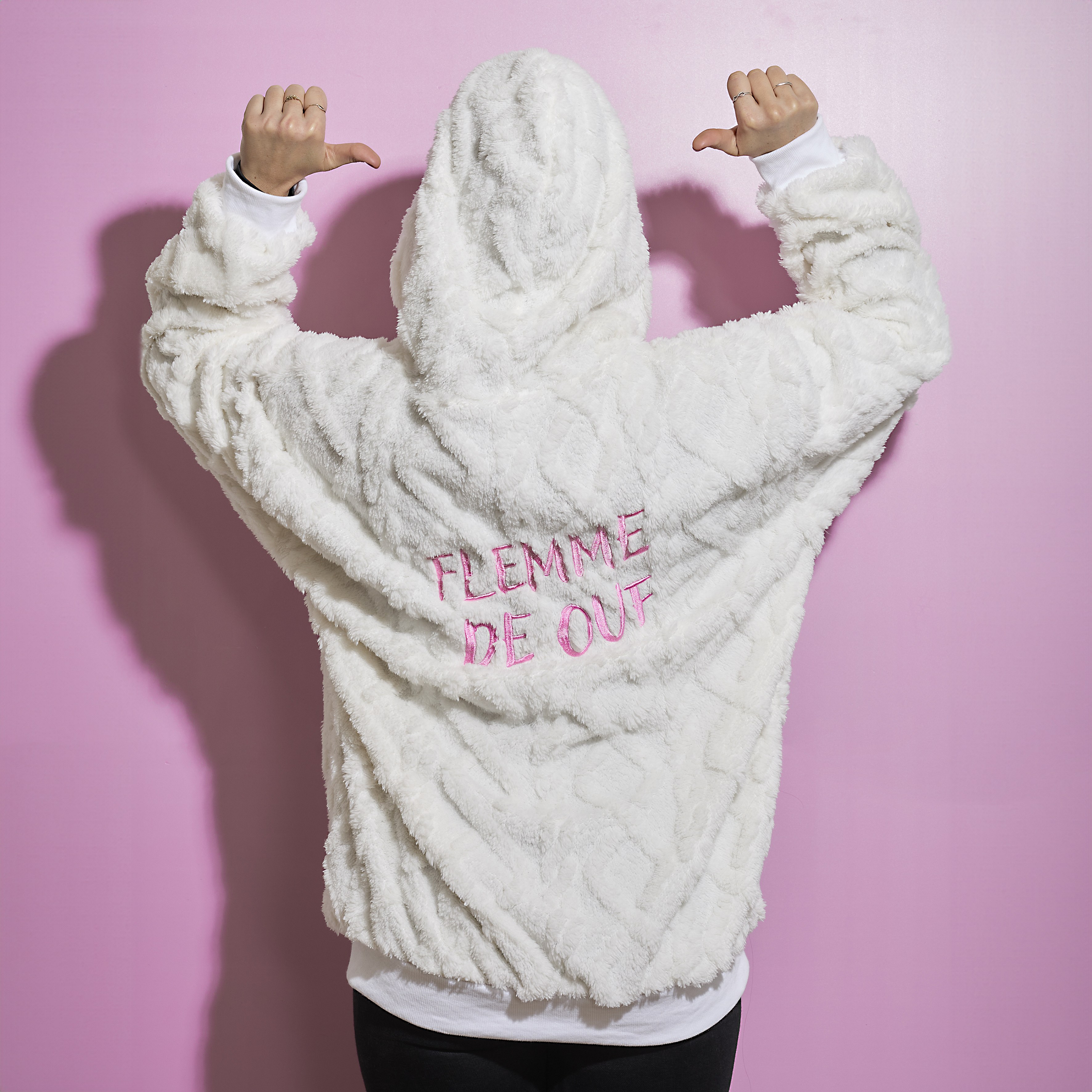 Sweat A Capuche Hoodie Flemme De Ouf Blanc Blanc, Rose