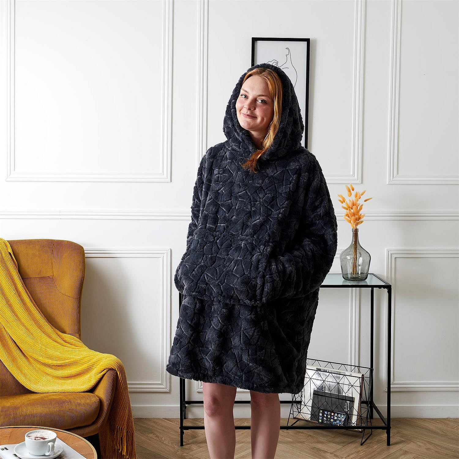 Plaid Poncho Gris Fonce Manches Int Sherpa Gris