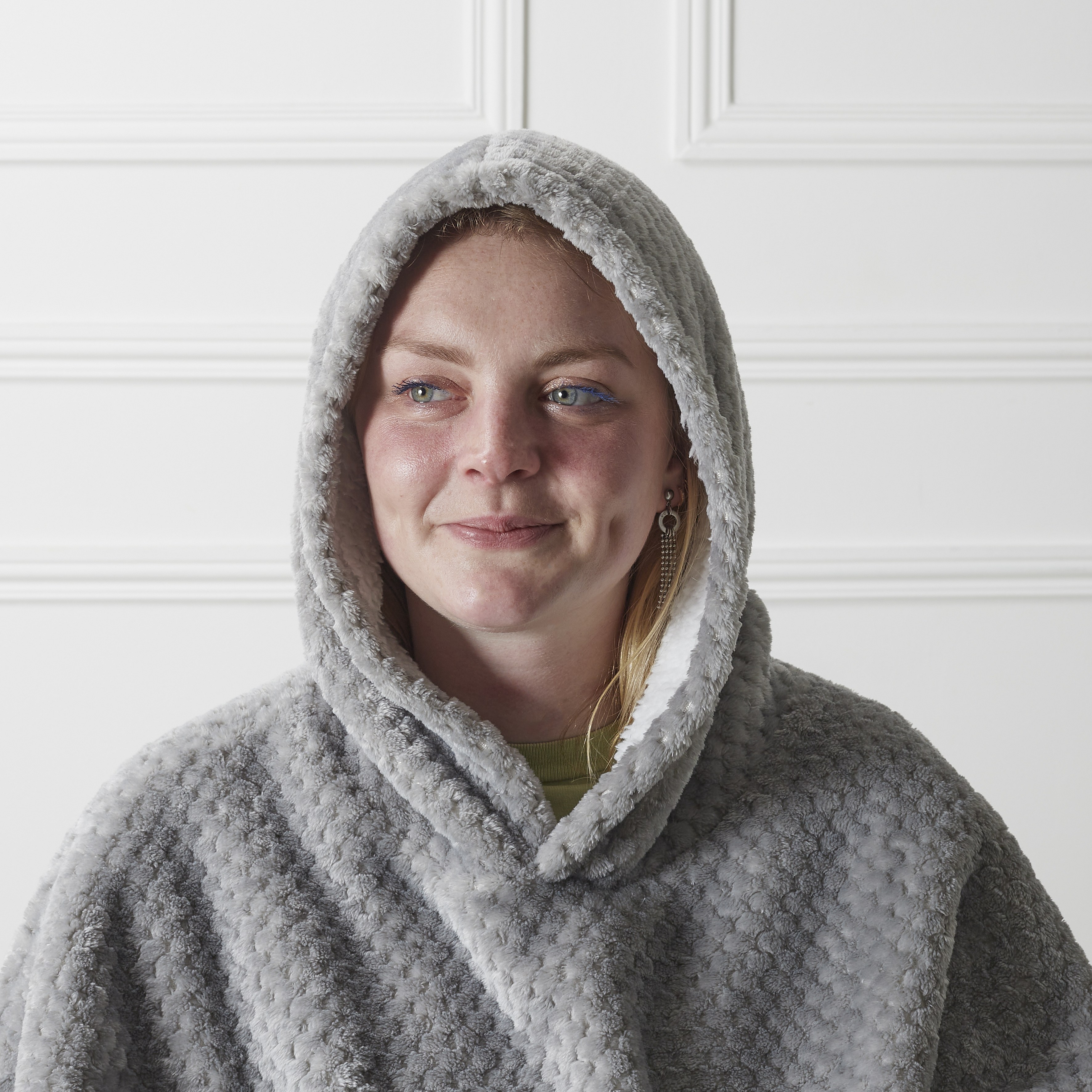Plaid Poncho Gris Fonce Manches Int Sherpa Gris