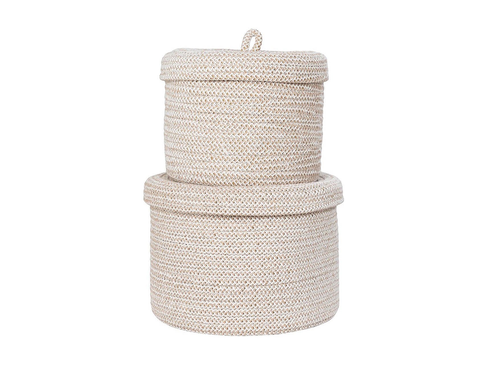 SYBELLE - Lot de 2 paniers ronds en coton beige avec couvercles