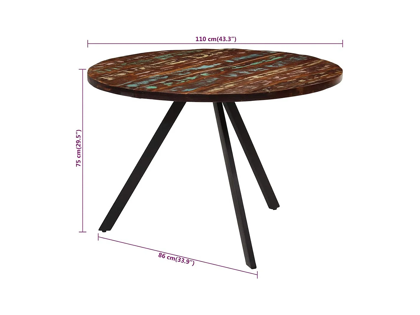 Table à manger 110x75 cm Bois massif de récupération