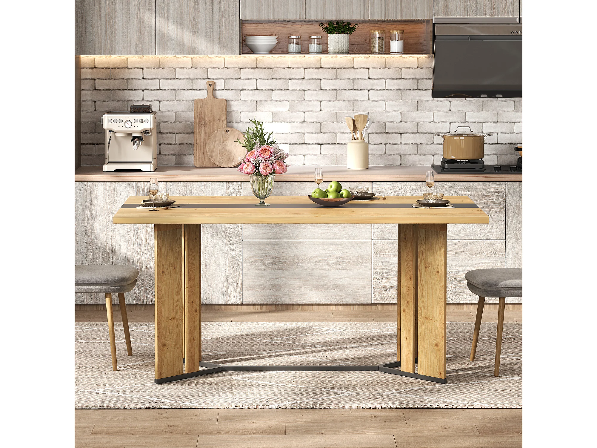 table à manger 150x80x76cm - grain de bois - peut accueillir 6 à 8 personnes - MDF - Naturel