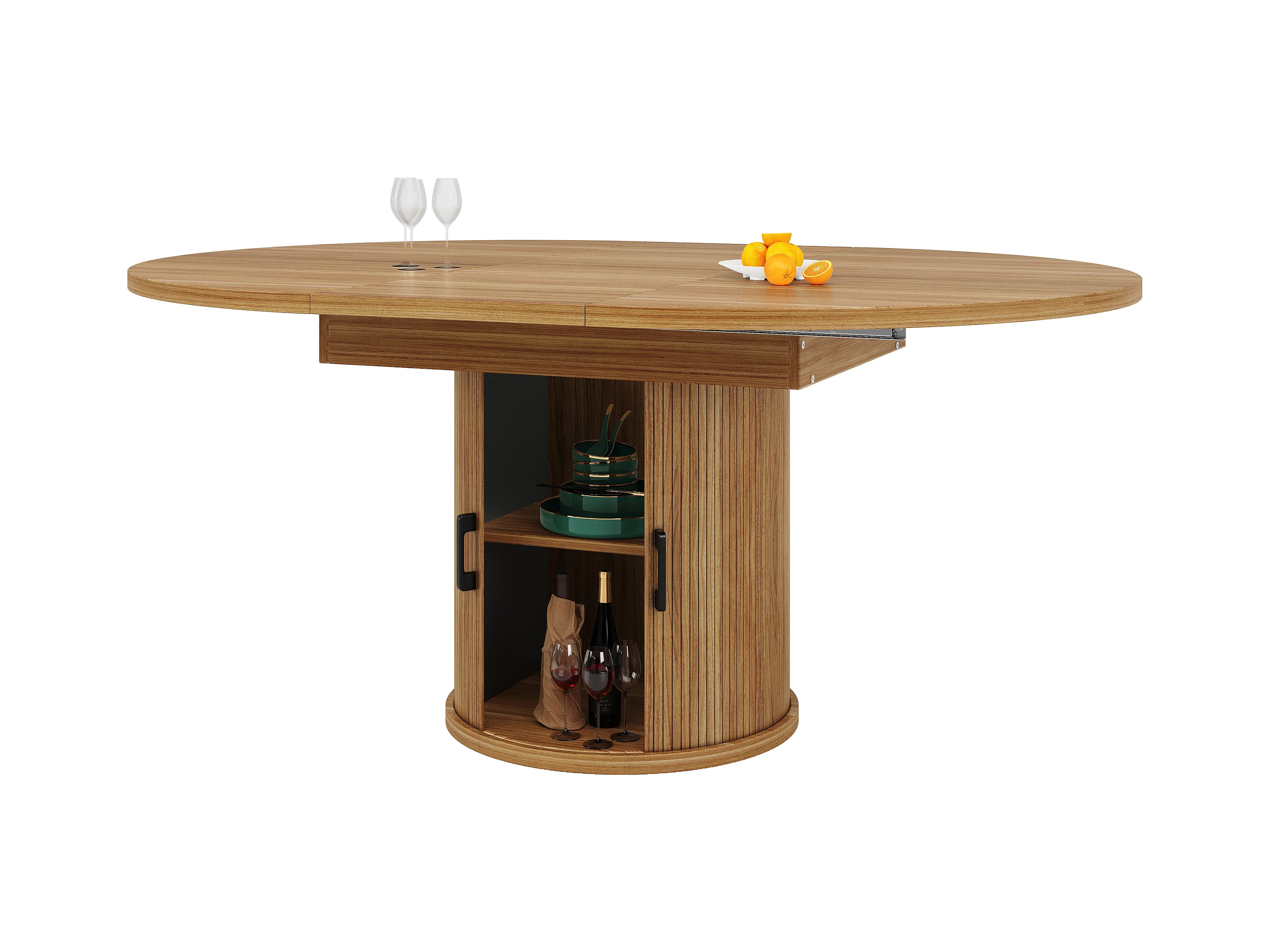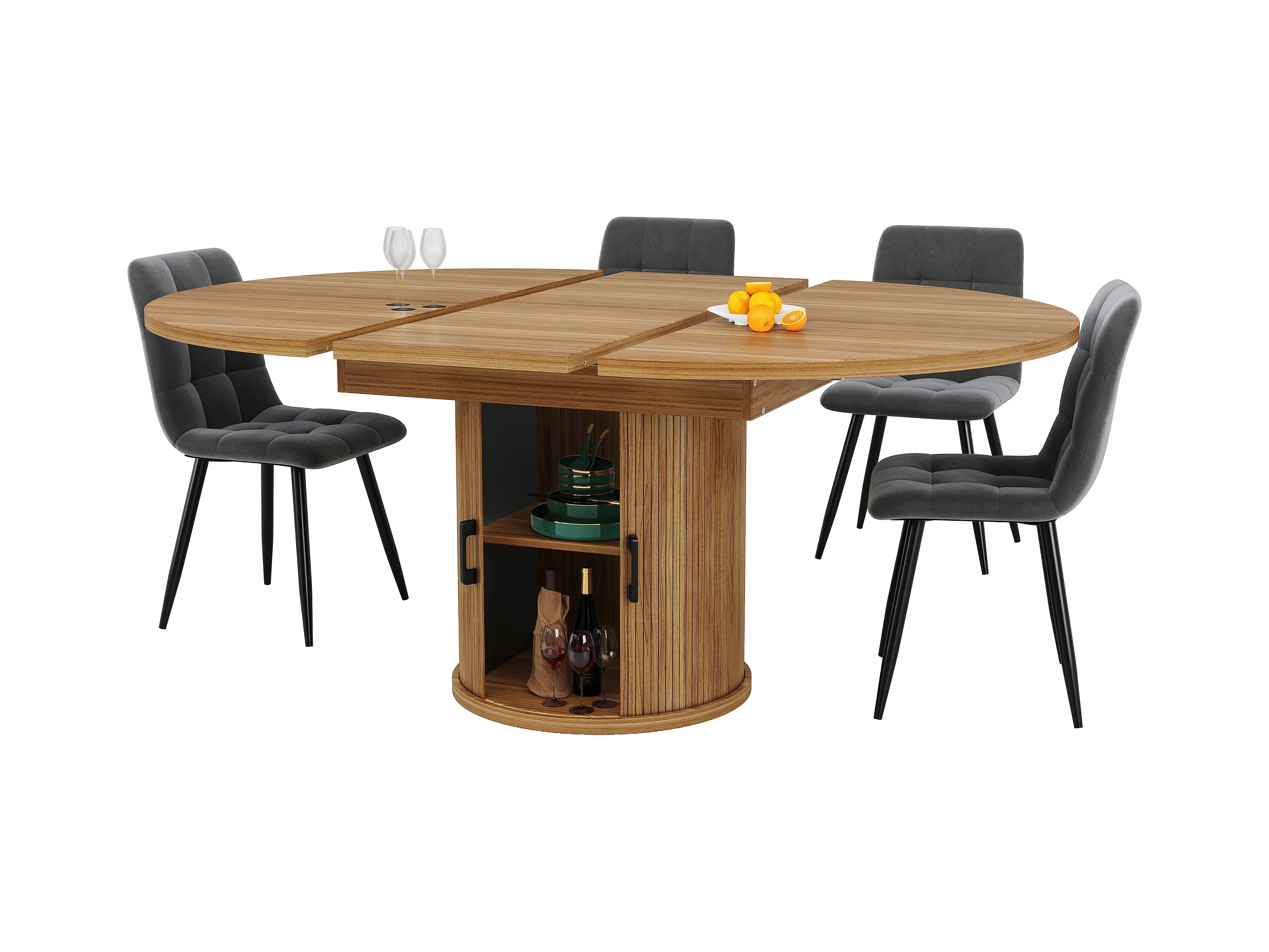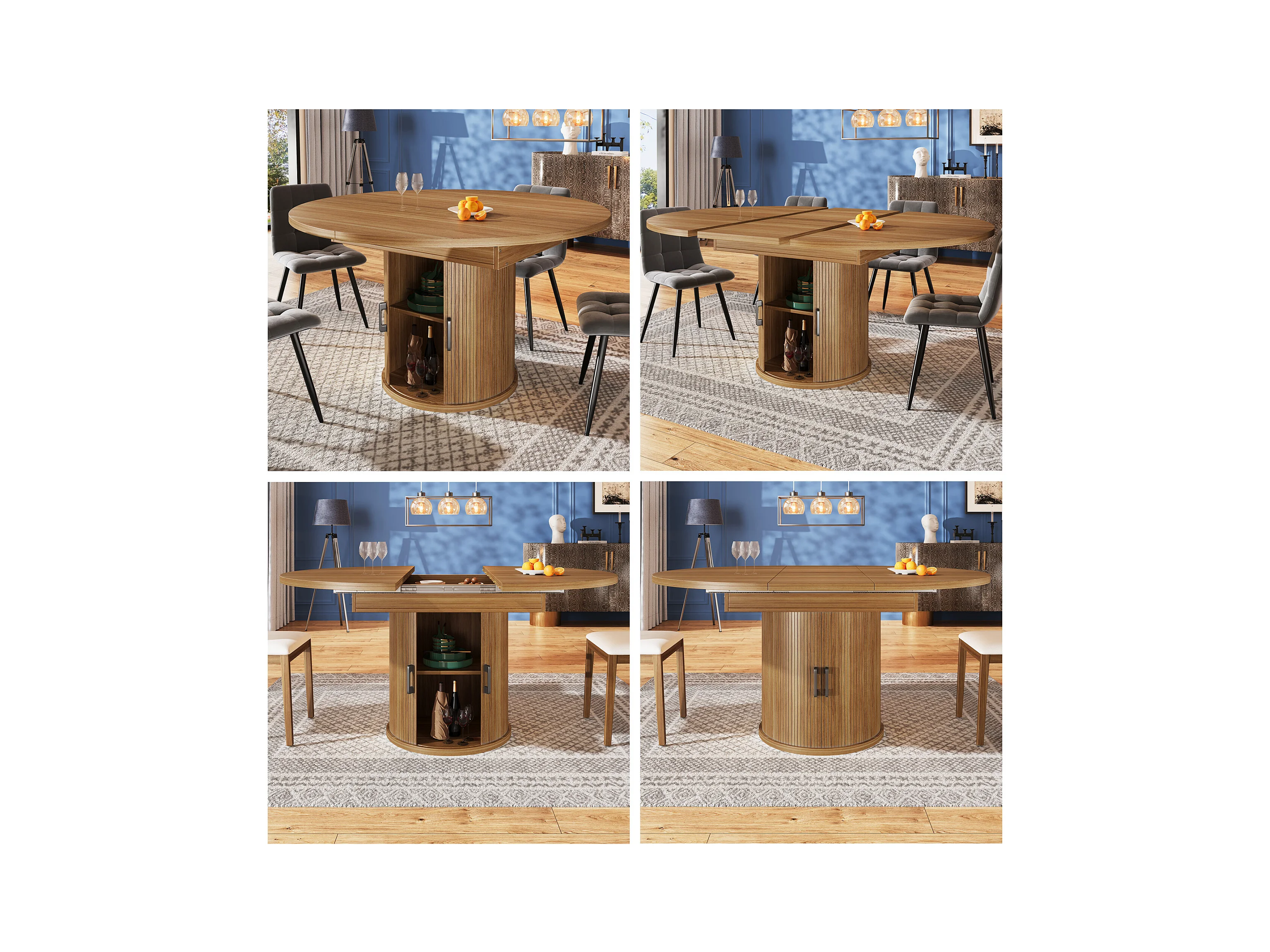 Table à manger 6 places - 118/158 x 118 x 76.8 cm - plateau extensible + avec rangements - MDF - naturel