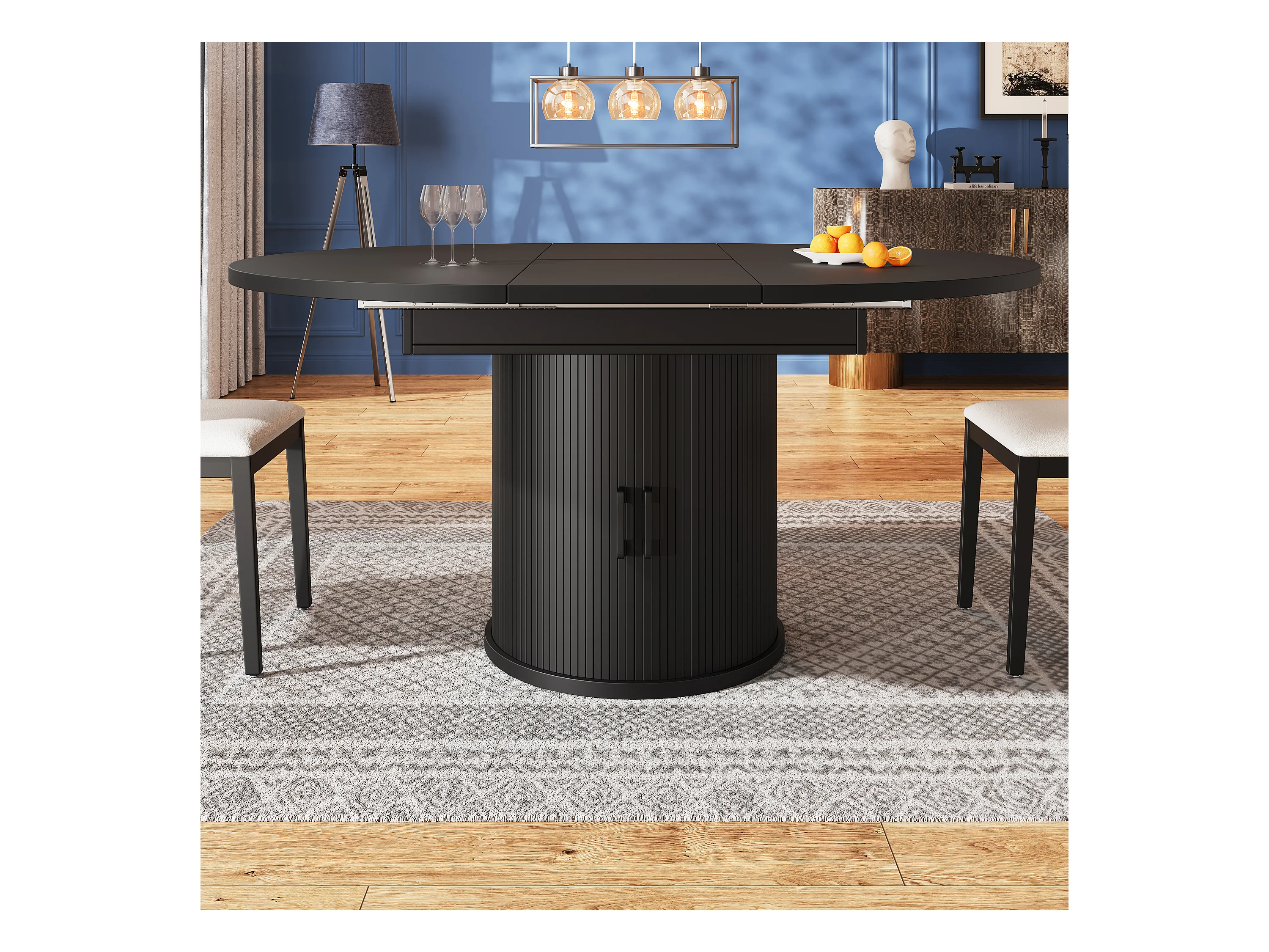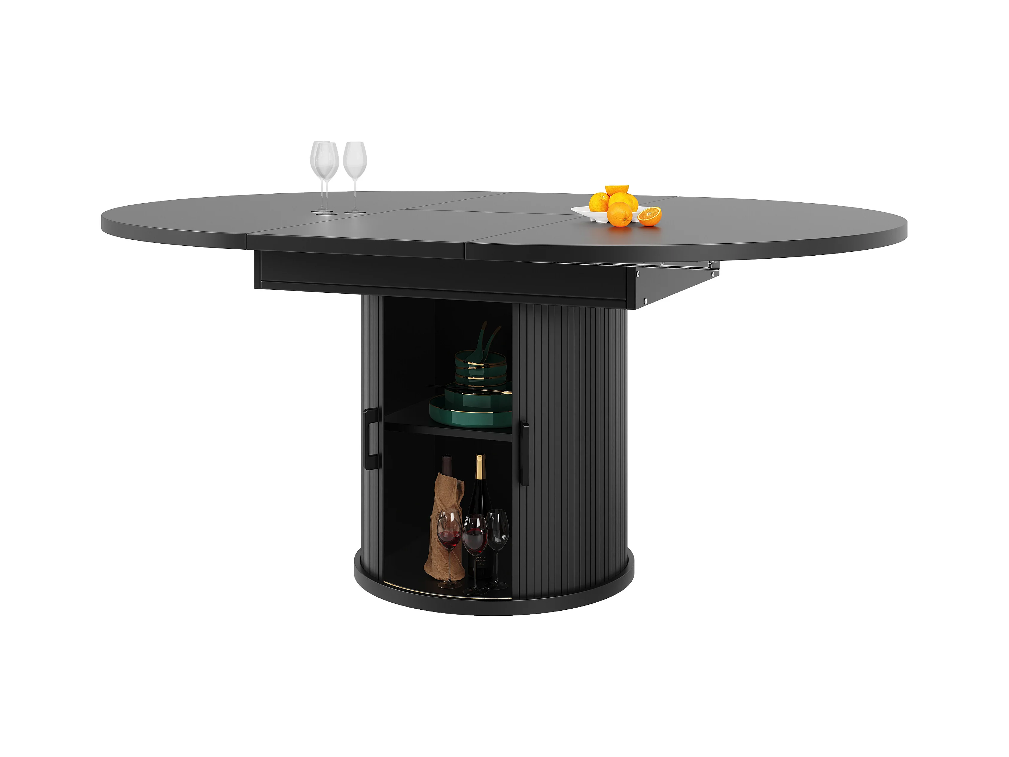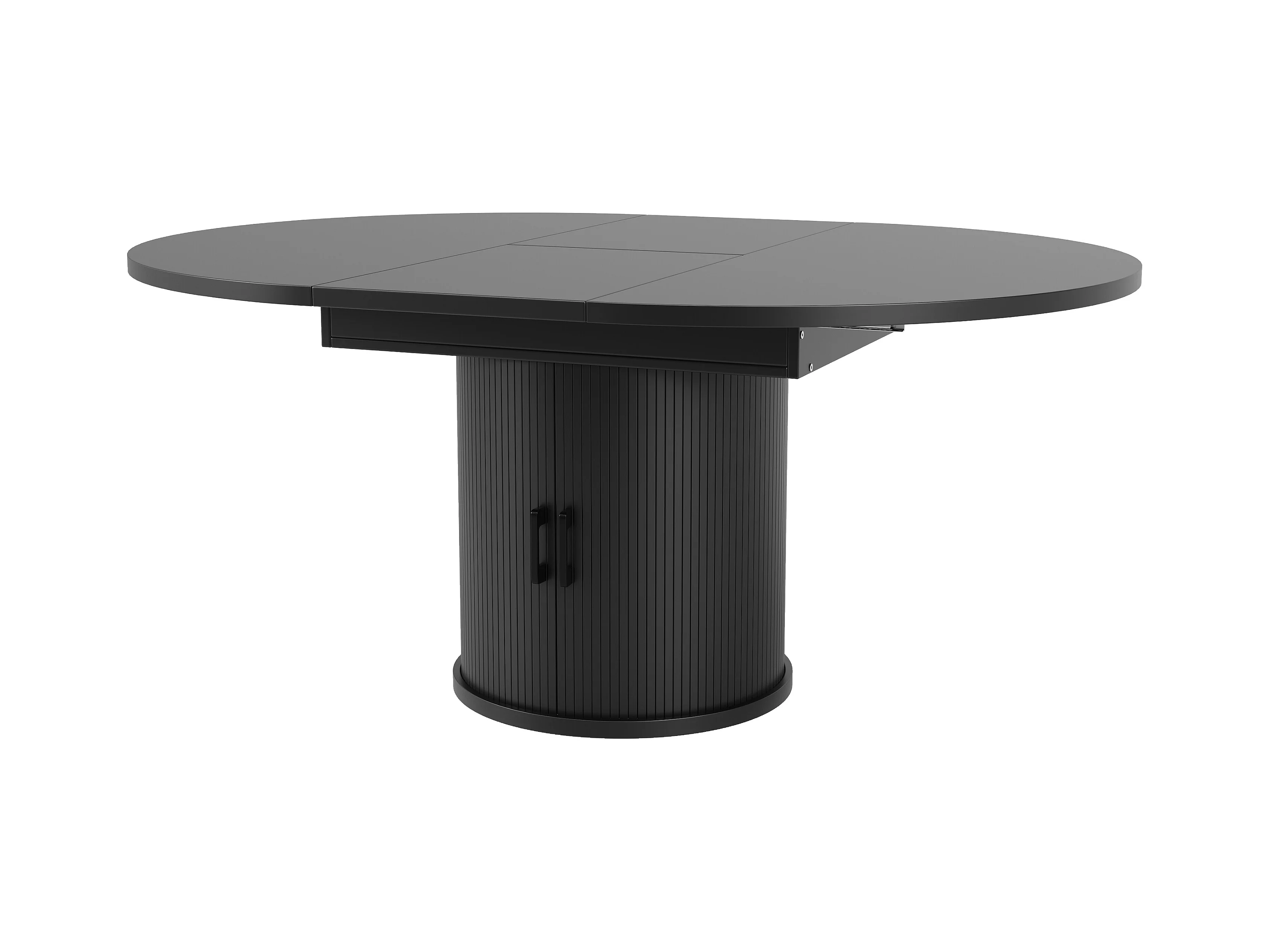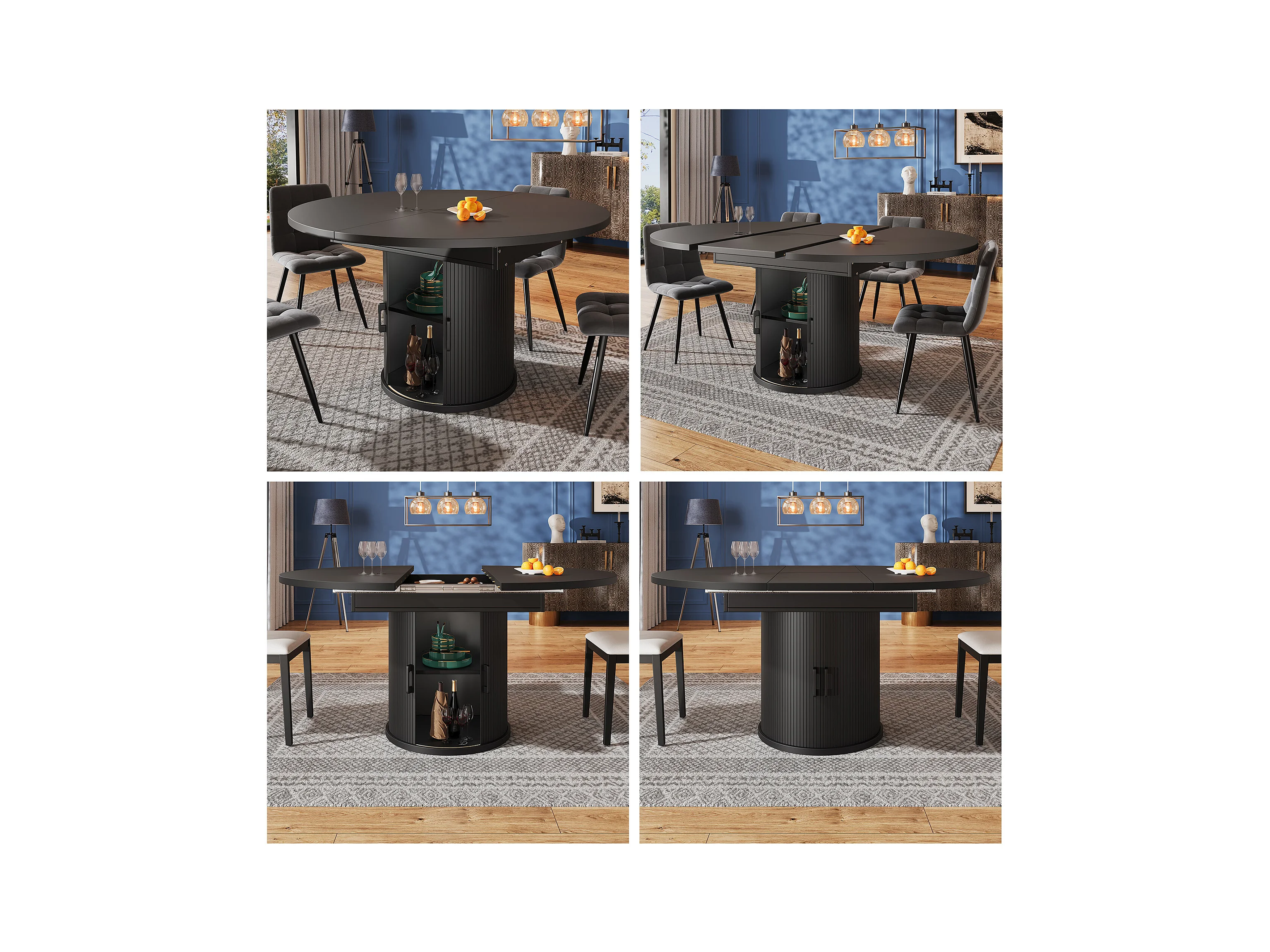 Table à manger 6 places - 118/158 x 118 x 76.8 cm - plateau extensible + avec rangements - MDF - noir