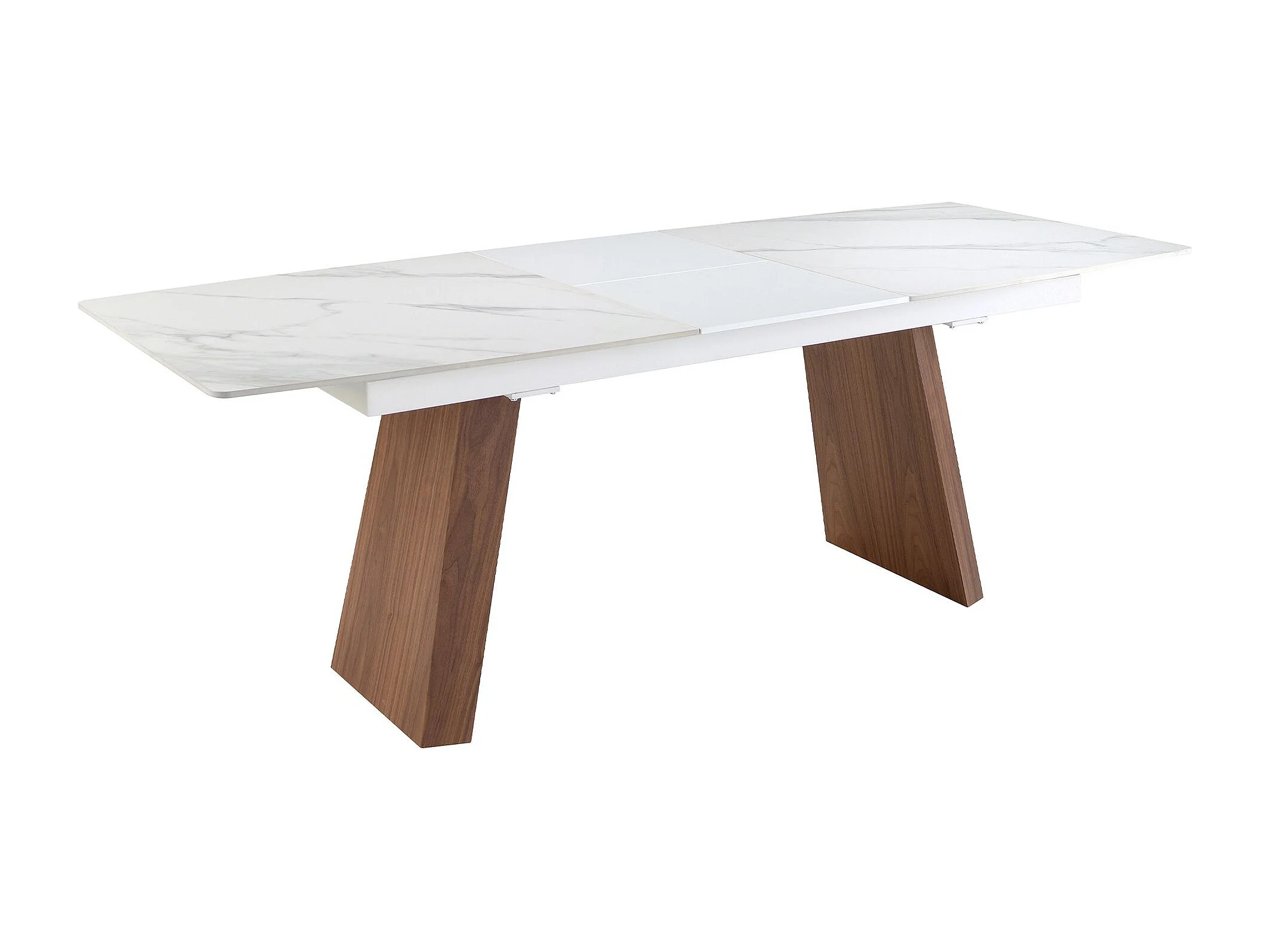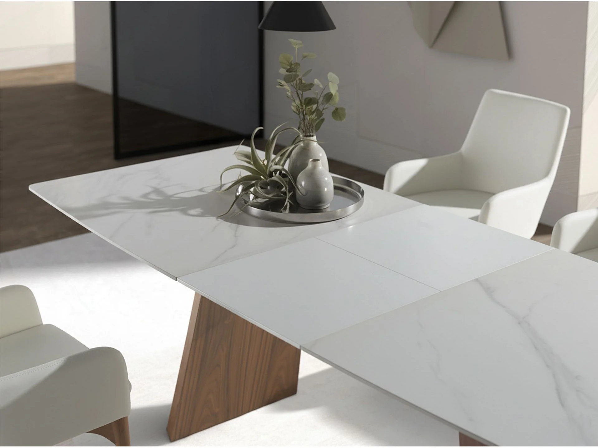 Table à manger à rallonge baril ovale marbre porcelaine et noyer 1134 ANGEL CERDA