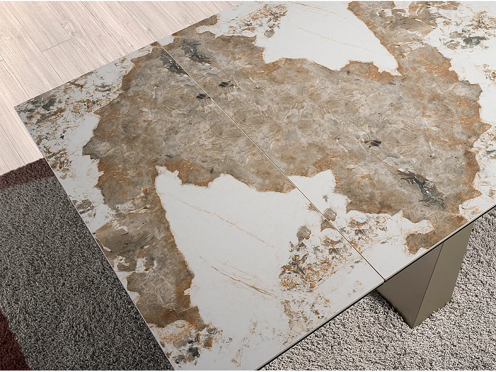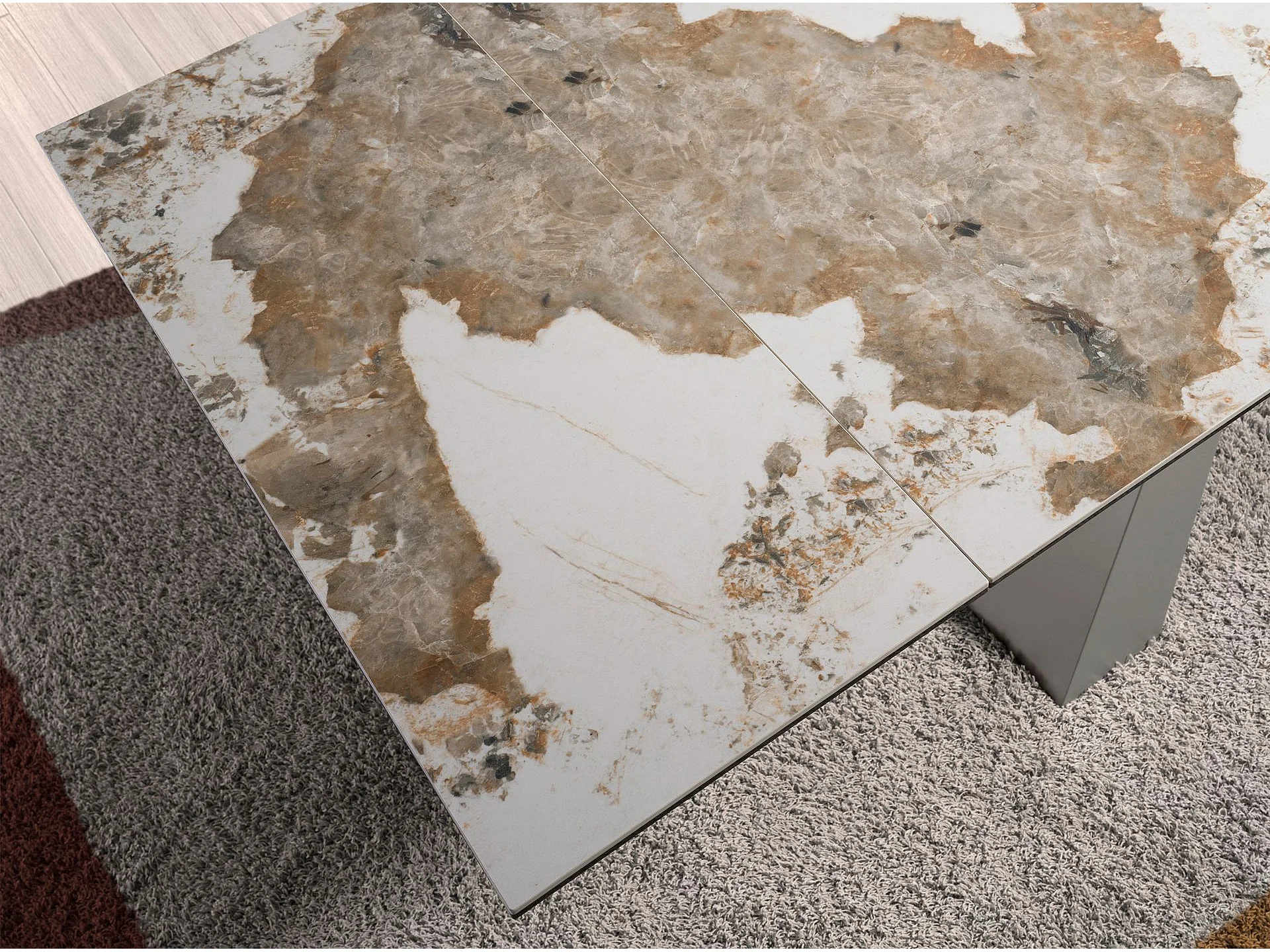 Rechteckiger ausziehbarer Esstisch aus Porzellanmarmor und taupefarbenem Stahl 1124 ANGEL CERDA