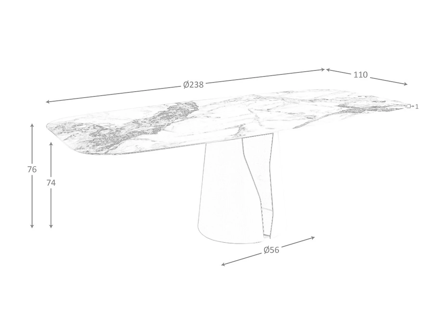 Table à manger baril ovale marbre porcelaine et acier blanc 1135 ANGEL CERDA