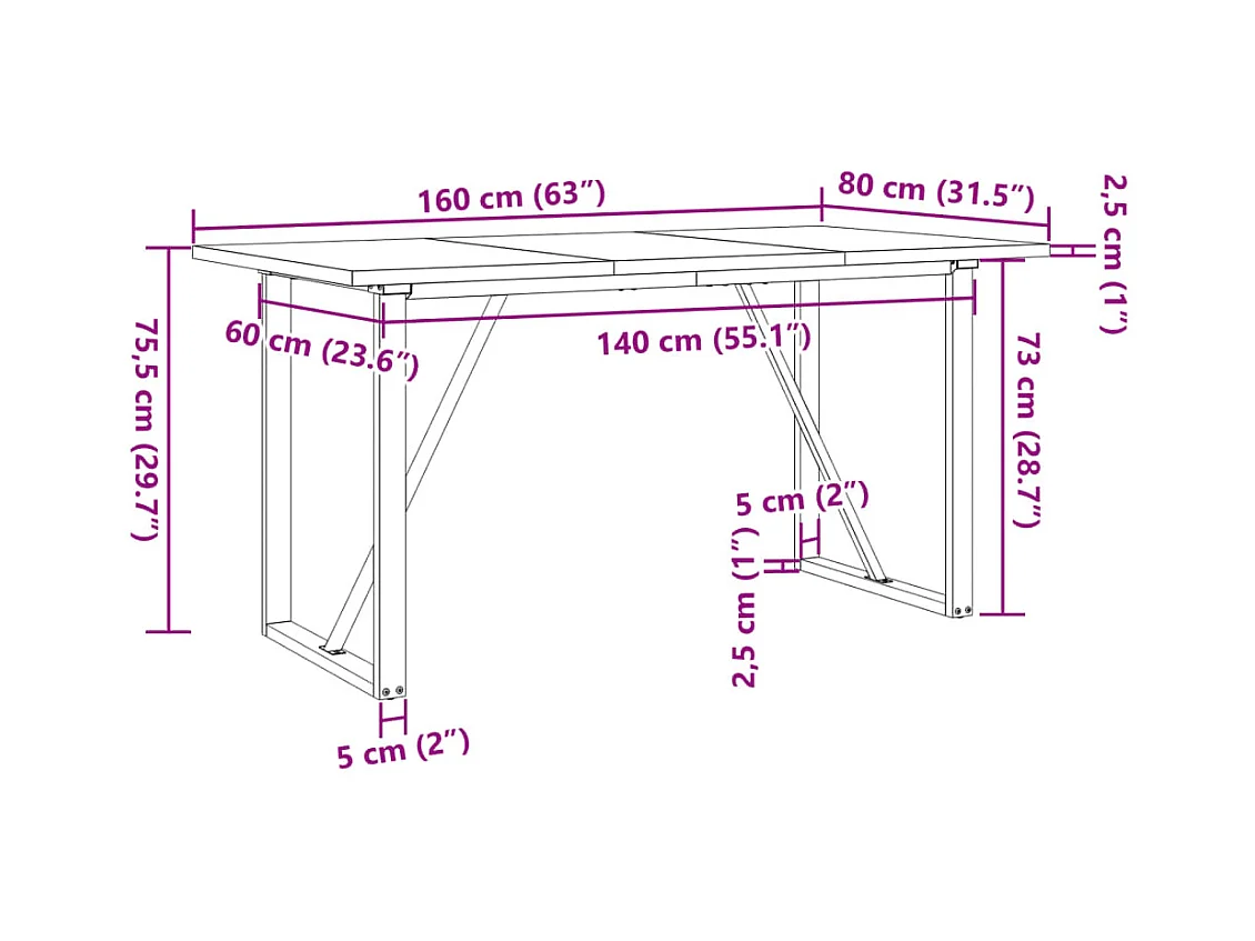 Table à manger cadre en O 160x80x75,5 cm bois pin massif acier