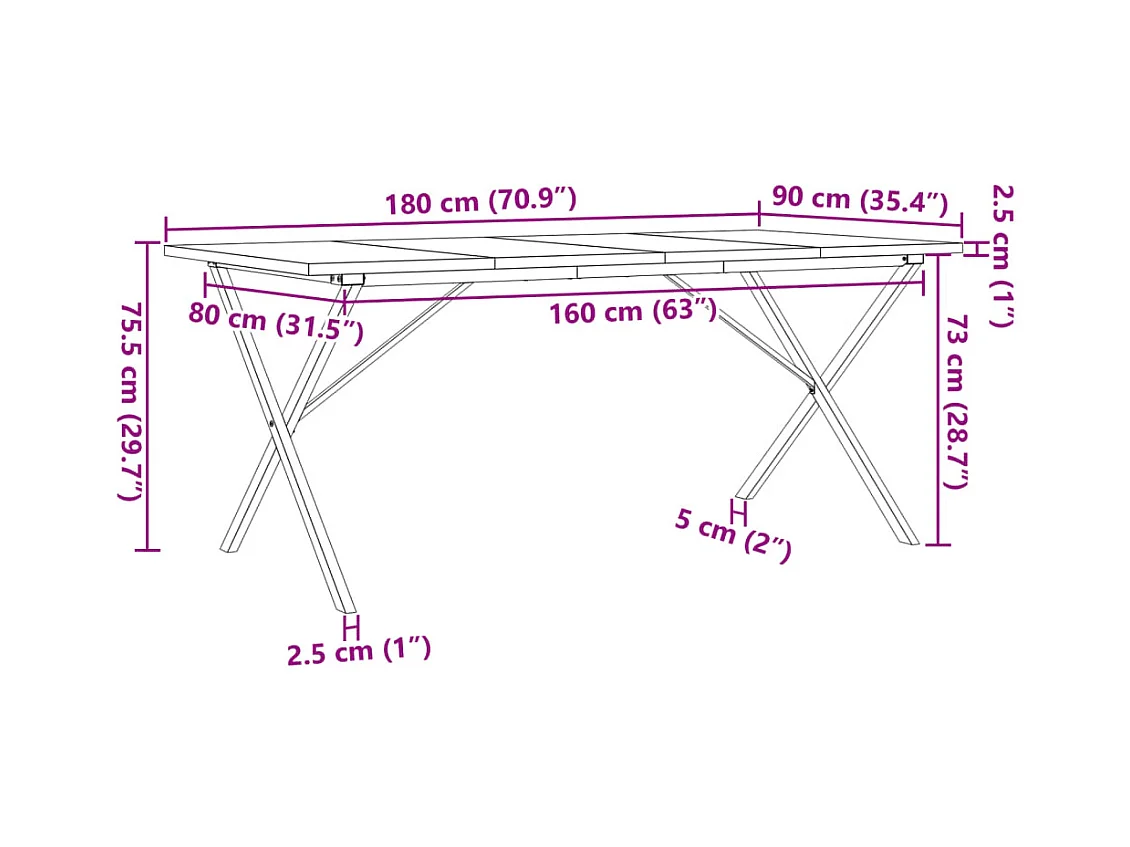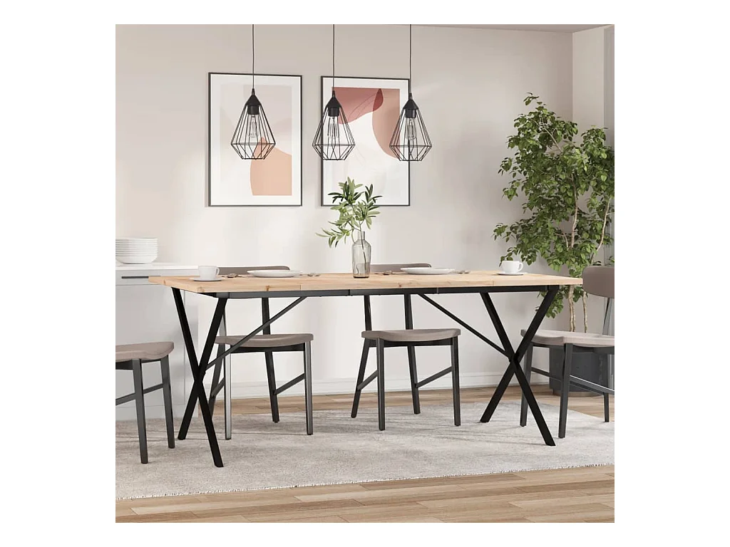 Table à manger cadre en X 180x90x75,5 cm bois pin massif acier