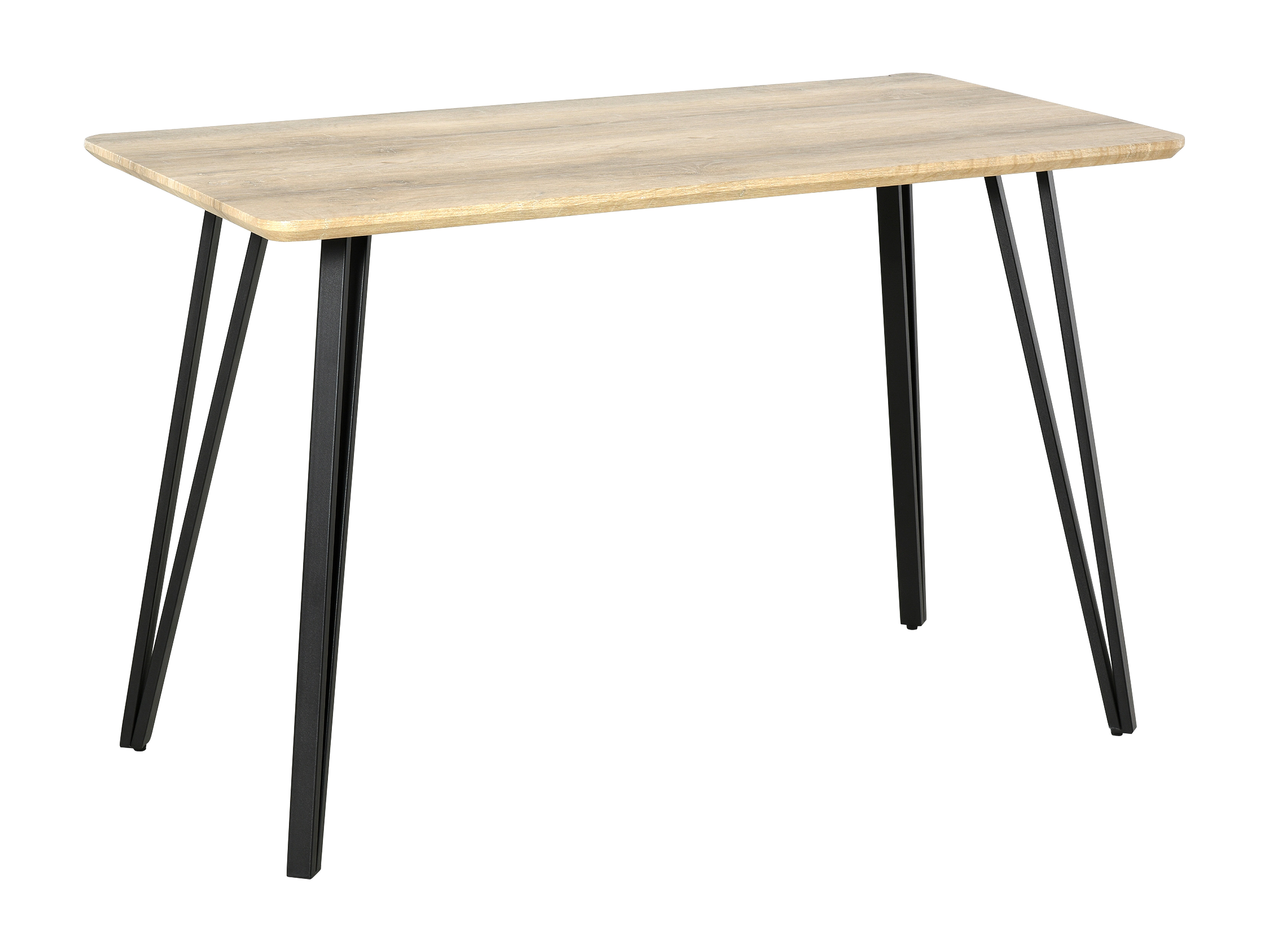 Table à manger design industriel grand plateau dim. 120L x 60l x 75H cm pieds métal noir en épingles MDF aspect chêne clair