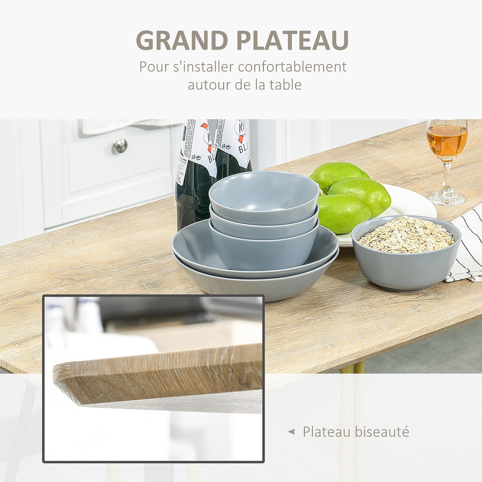 Table à manger rectangulaire 4 personnes piètement acier plateau effet bois naturel