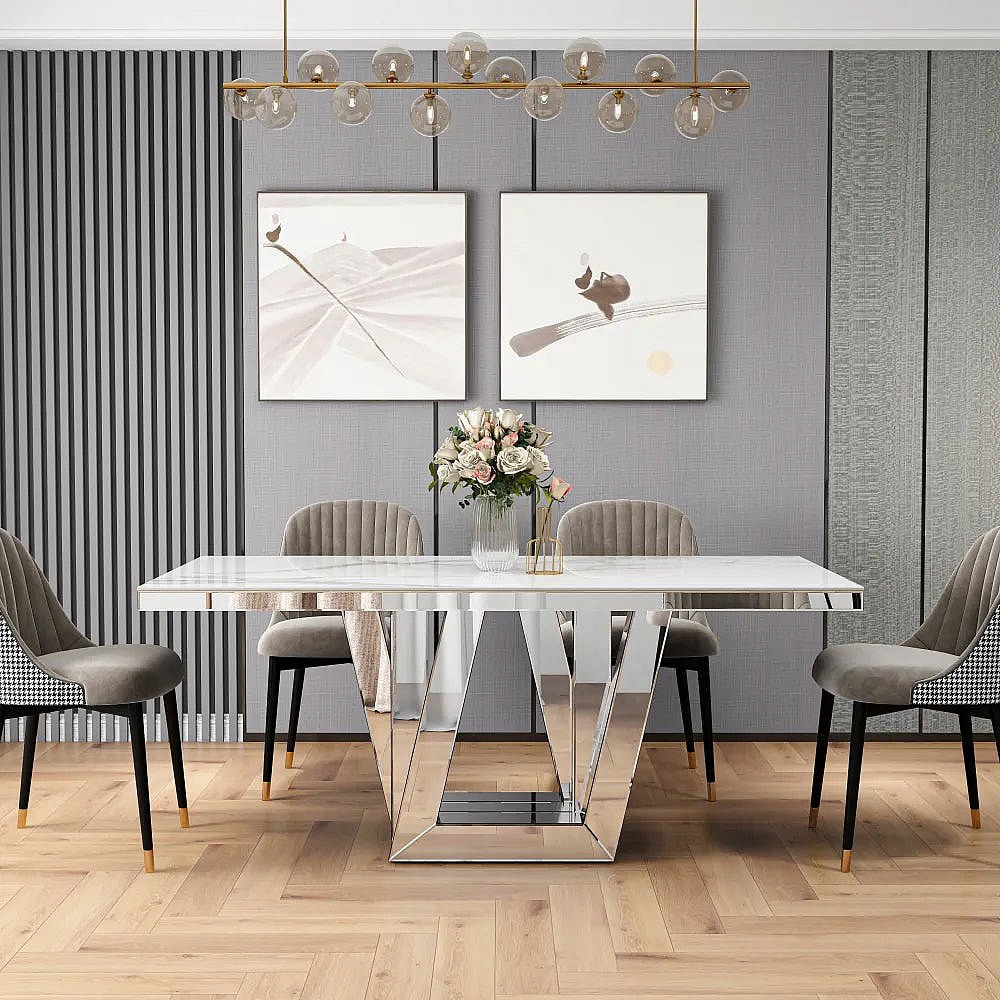 Table à manger ELEGANCE miroir plateau marbre blanc