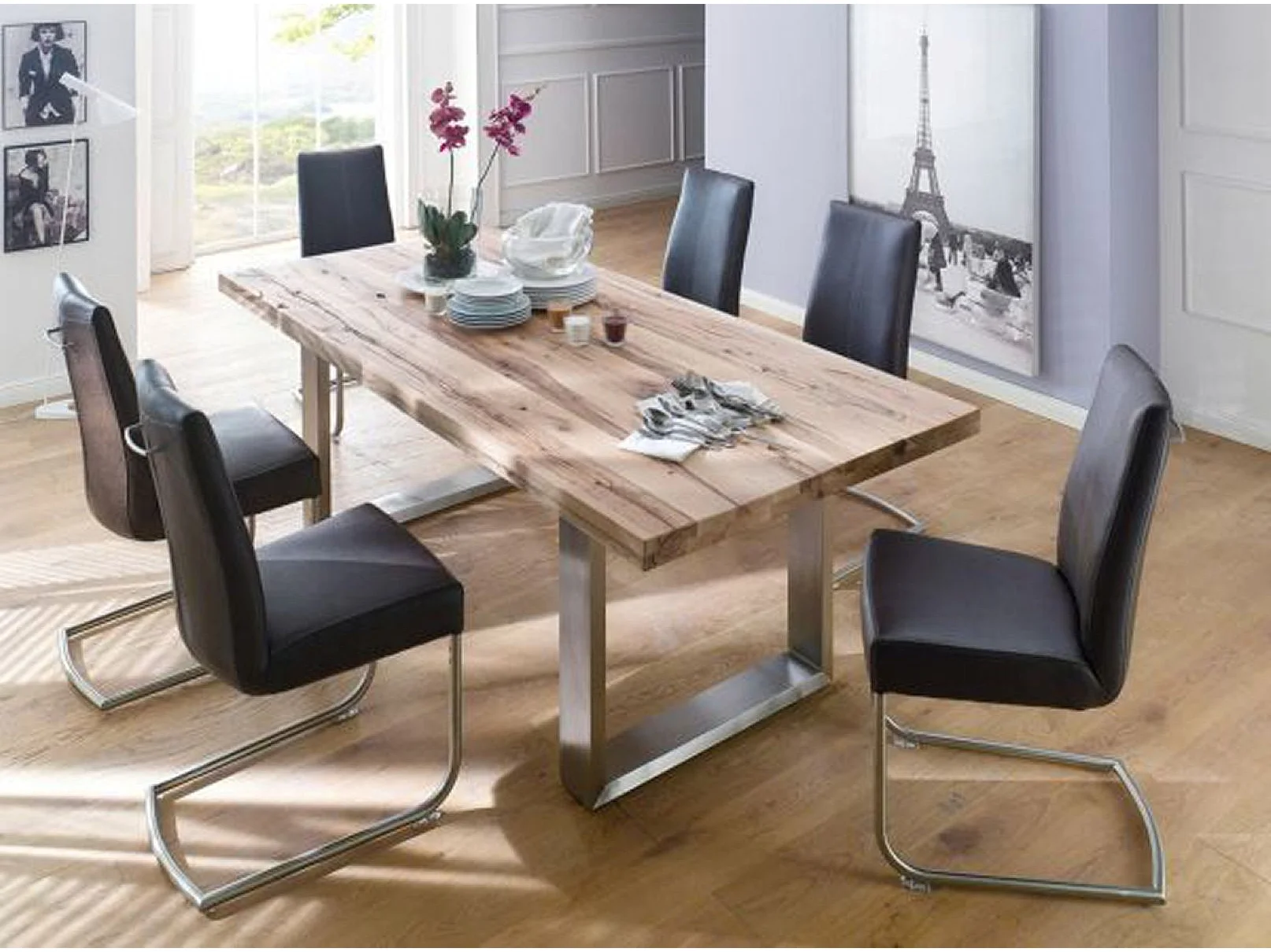 Table à manger en chêne sauvage, laqué mat massif - L.240 x H.76 x P.100 cm