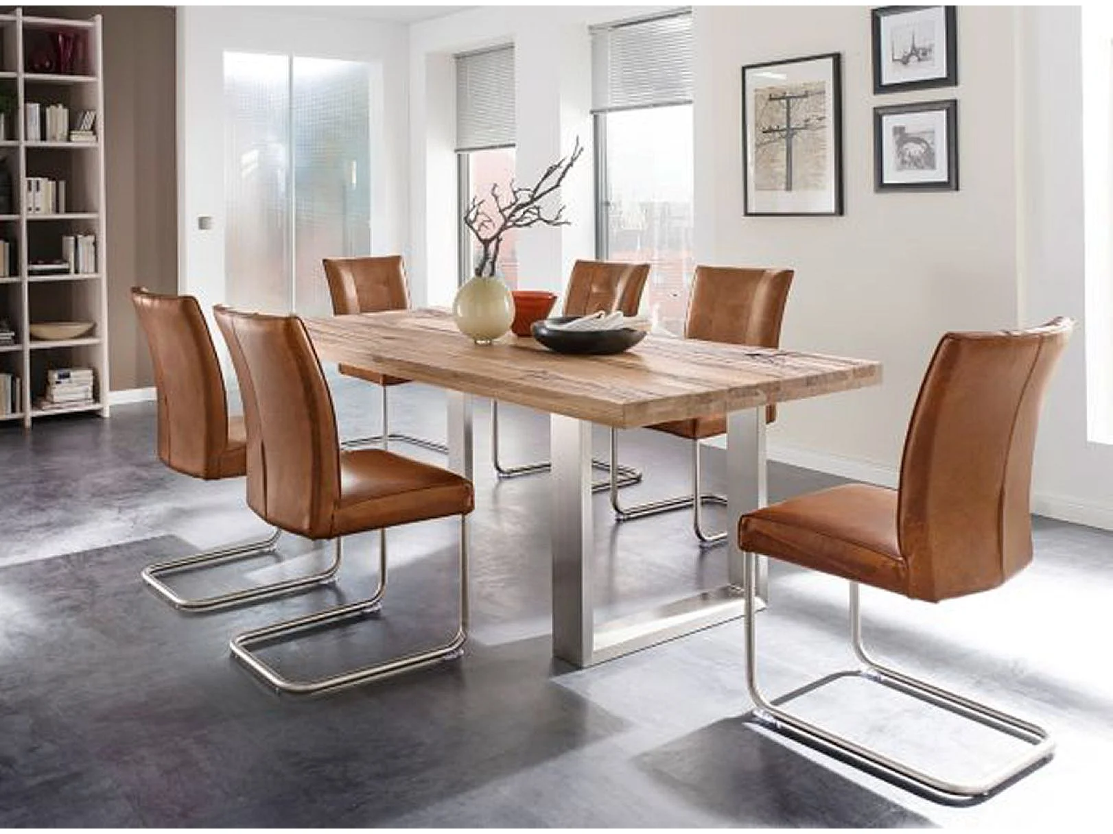 Table à manger en chêne sauvage, laqué mat massif - L.260 x H.76 x P.100 cm