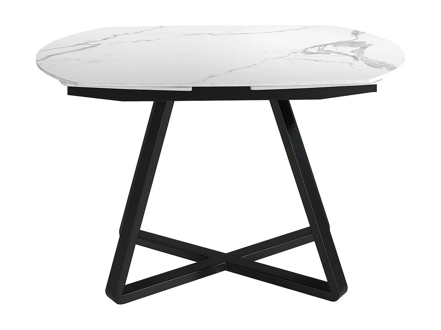 Table à manger à rallonge baril ovale marbre porcelaine et acier noir 1096 ANGEL CERDA
