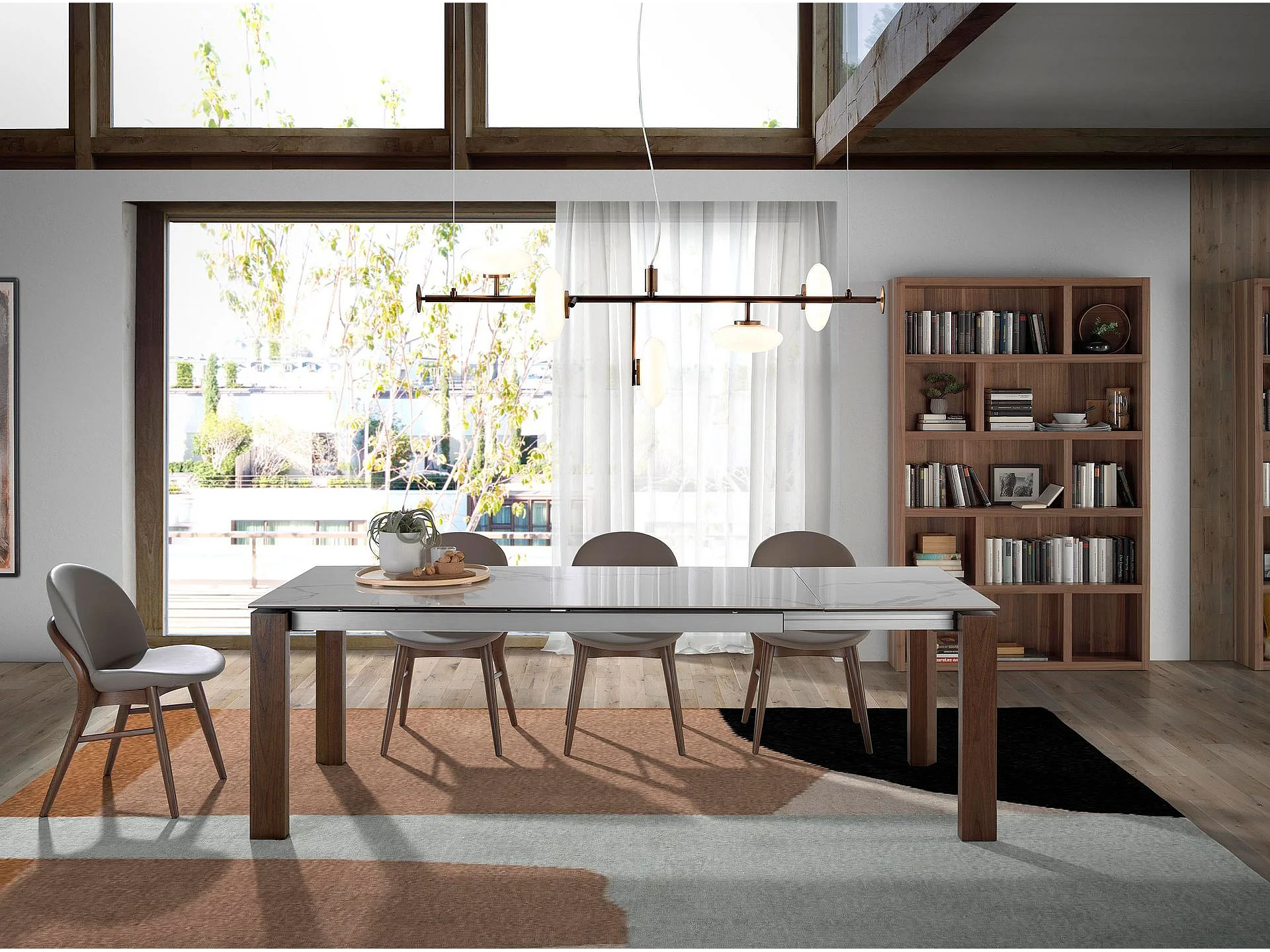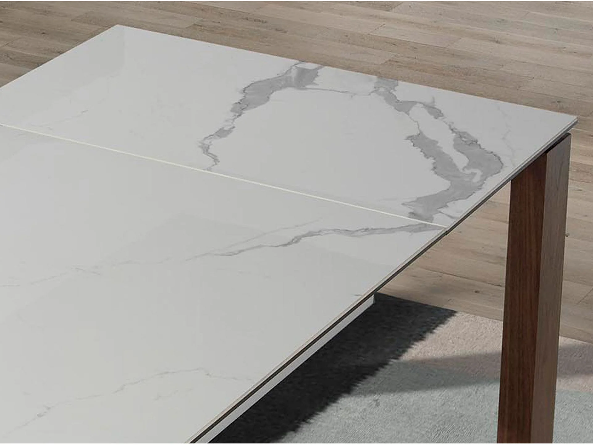 Table à manger à rallonge rectangulaire marbre porcelaine et noyer 1095 ANGEL CERDA