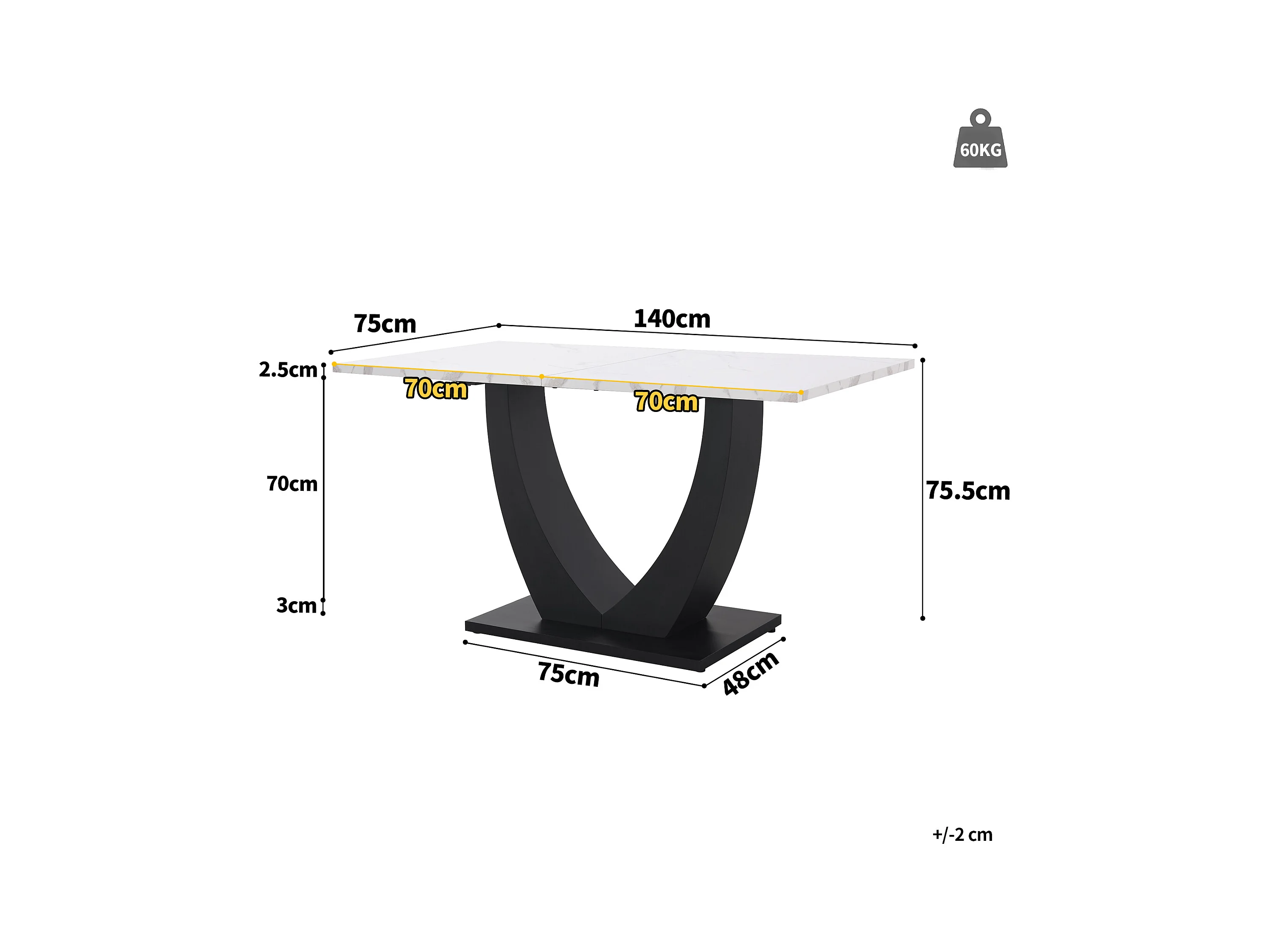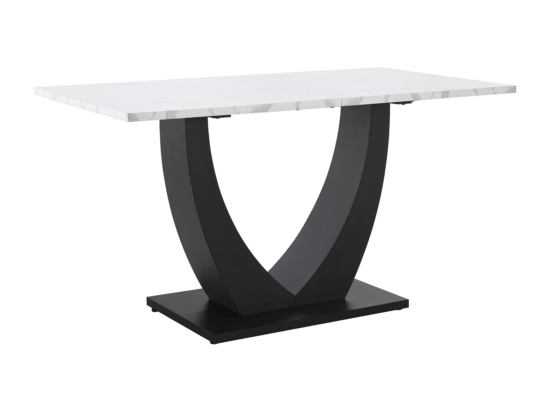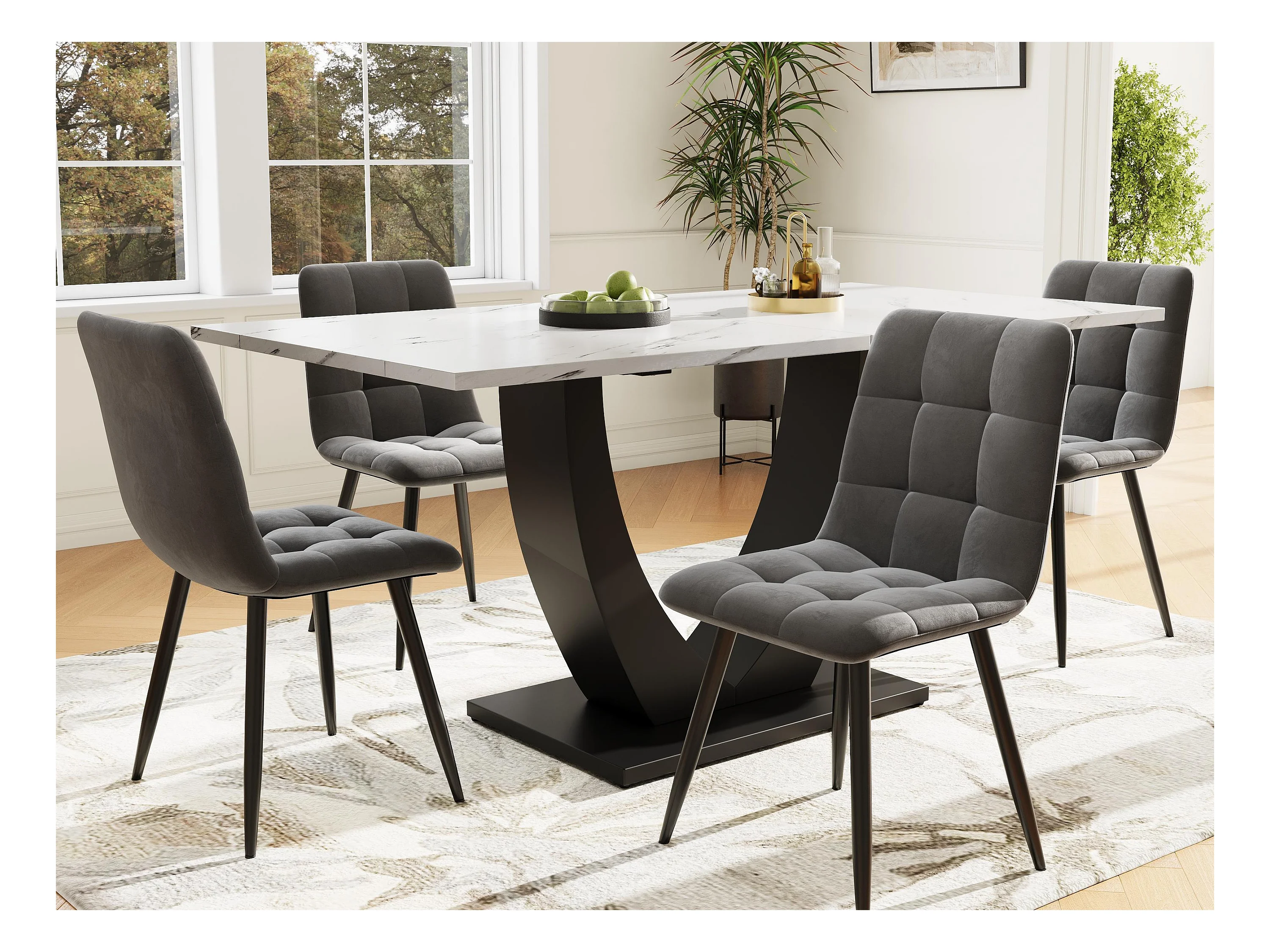 Table à manger et 4 chaises - plateau en MDF、Structure en métal et coussins en velours - Blanc & Noir