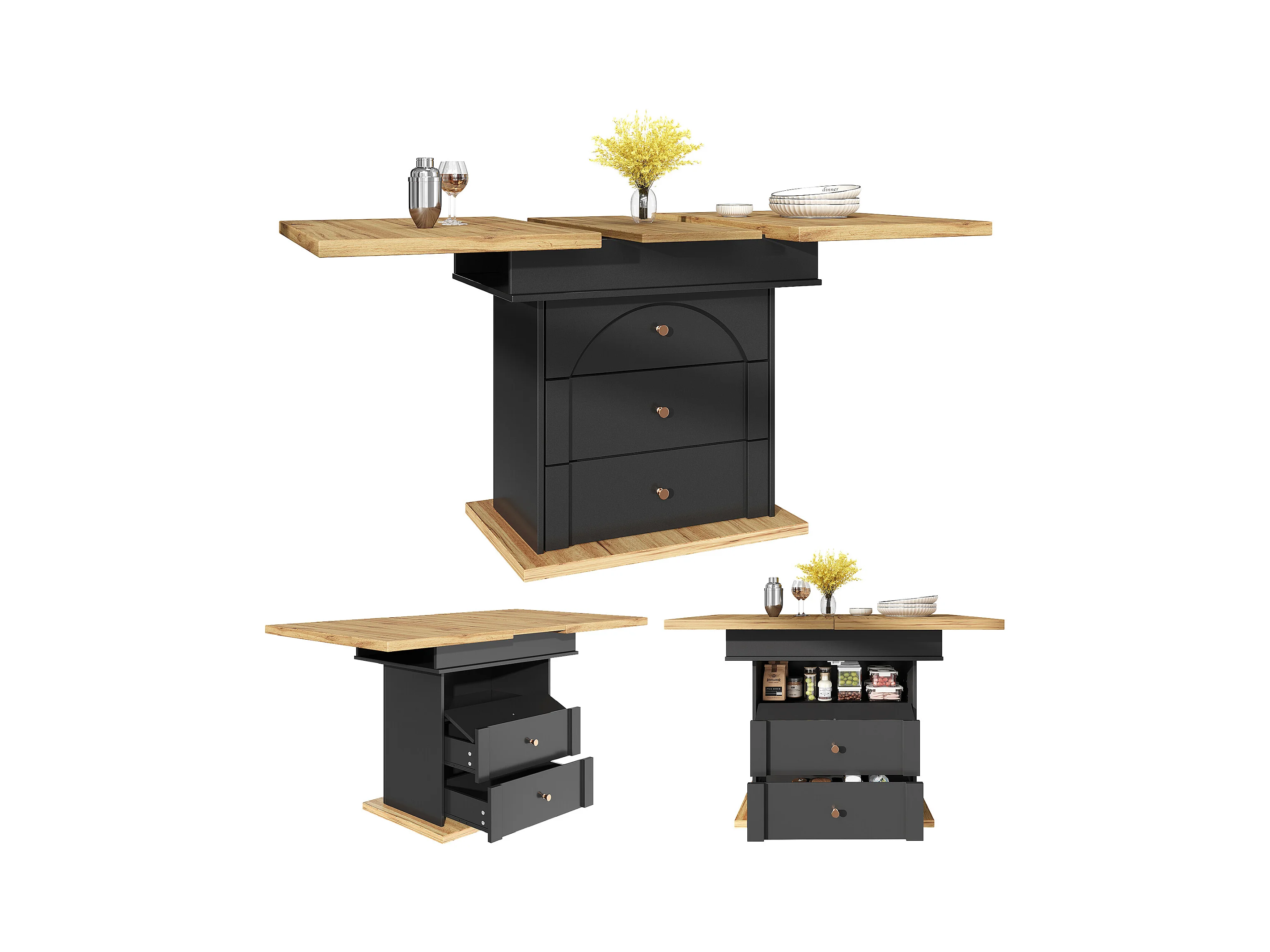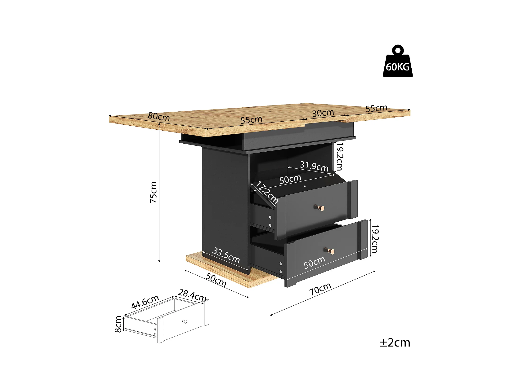 Table à manger extensible 110-140×80cm - 4-6 personne - 1 porte et 2 tiroirs - Style moderne - Noir