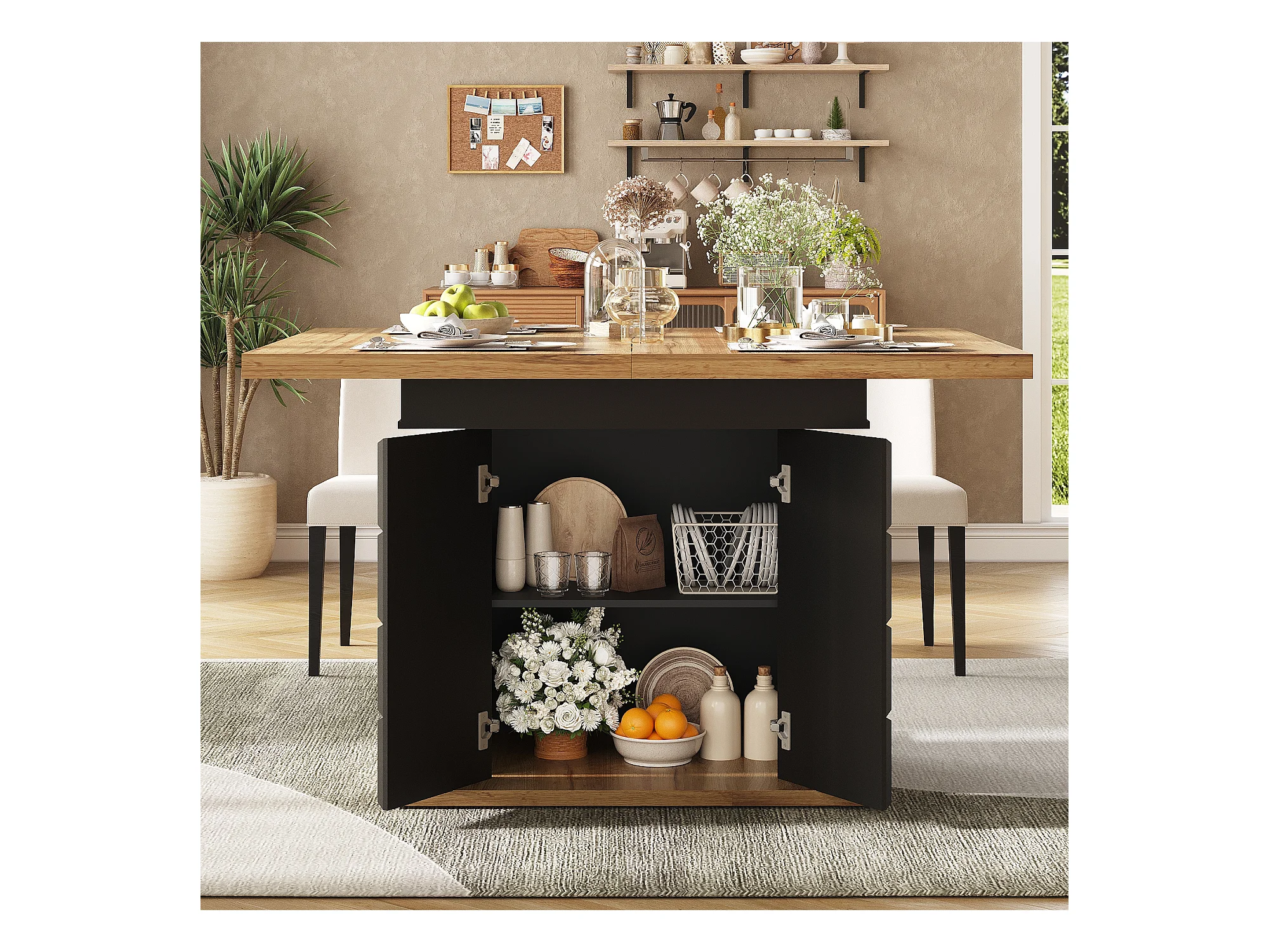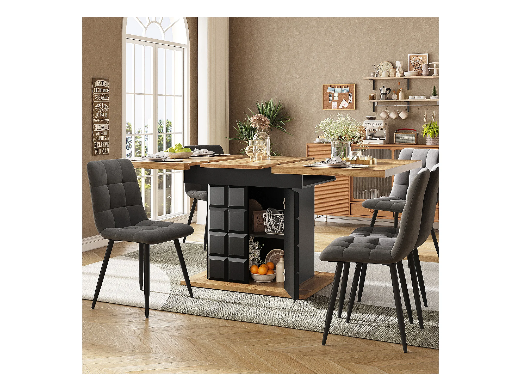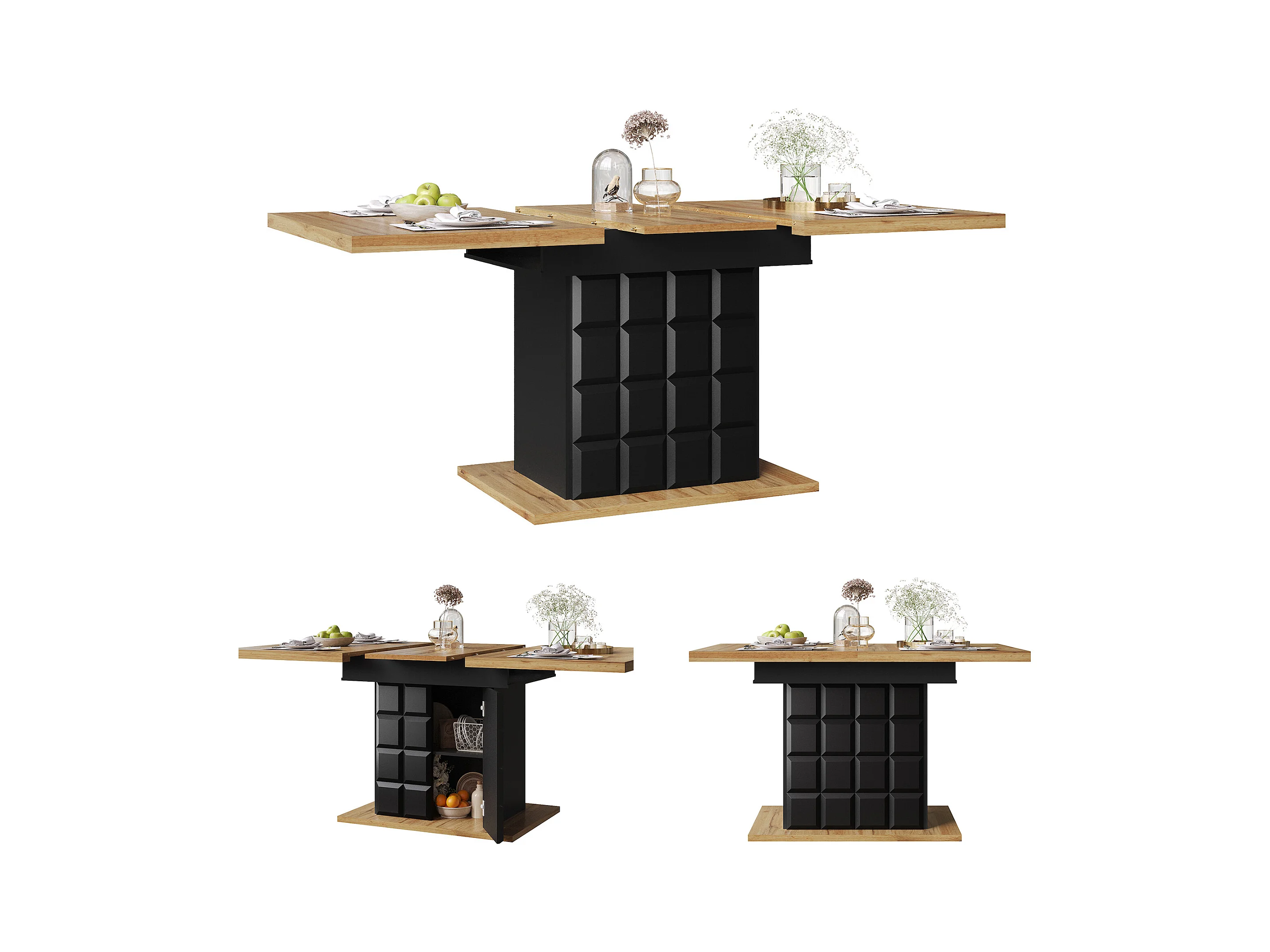 Table à manger extensible 110-140×80cm - 4-6 personnes - avec 2 portes - table à carreaux - Noir