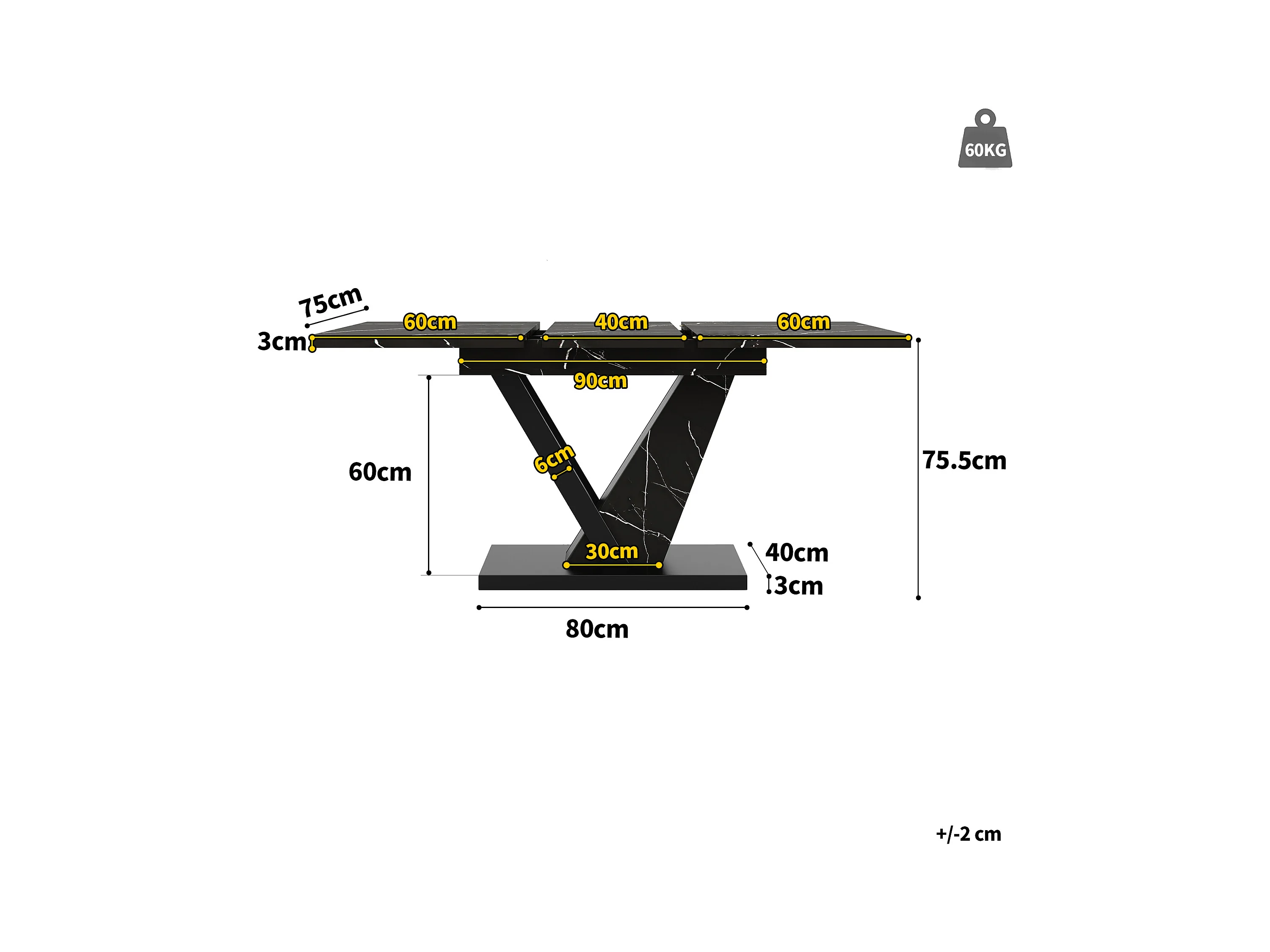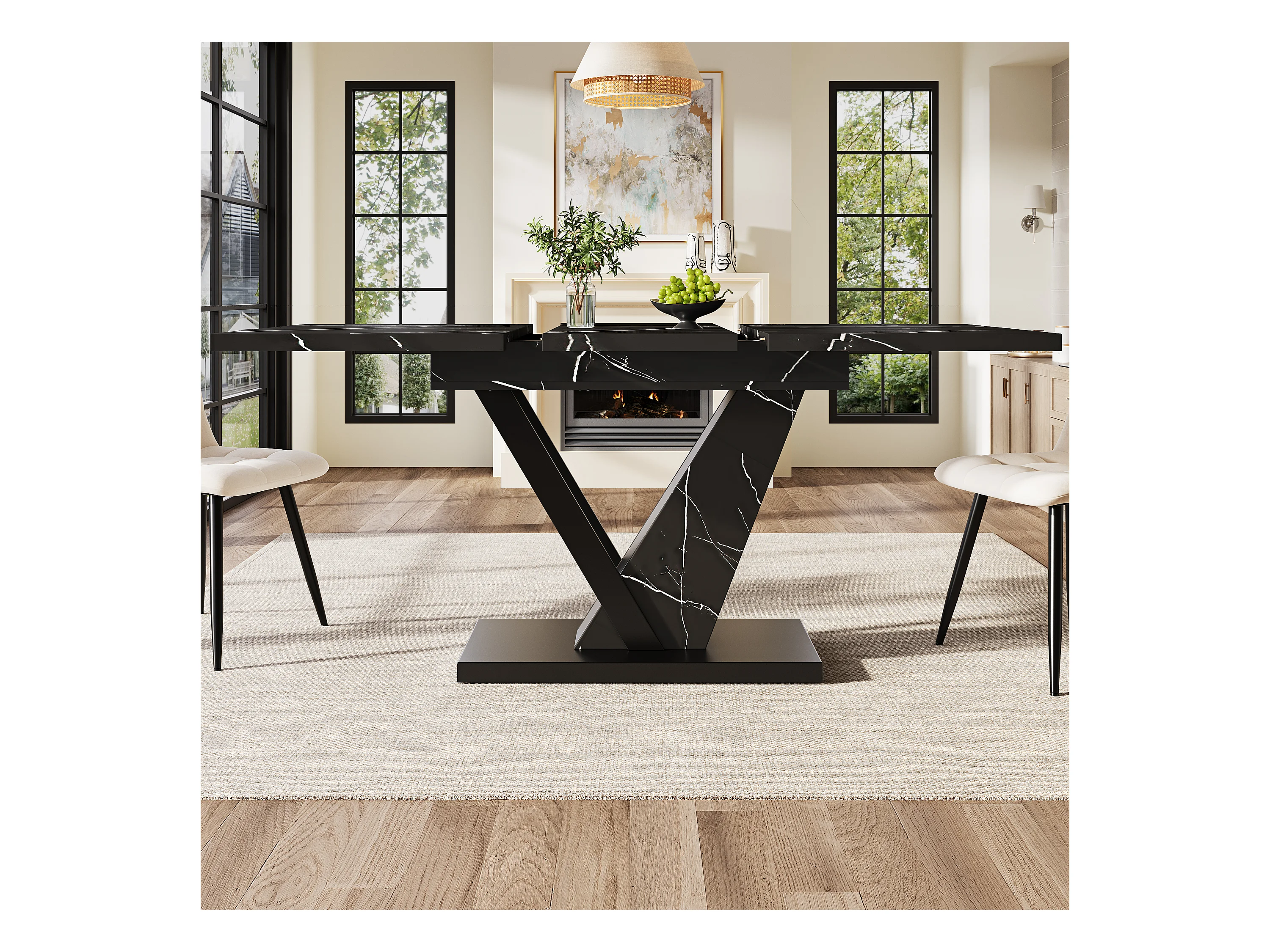 Table à manger extensible 120-160x75x75.5cm - 6 à 8 personnes - en MDF - Noir