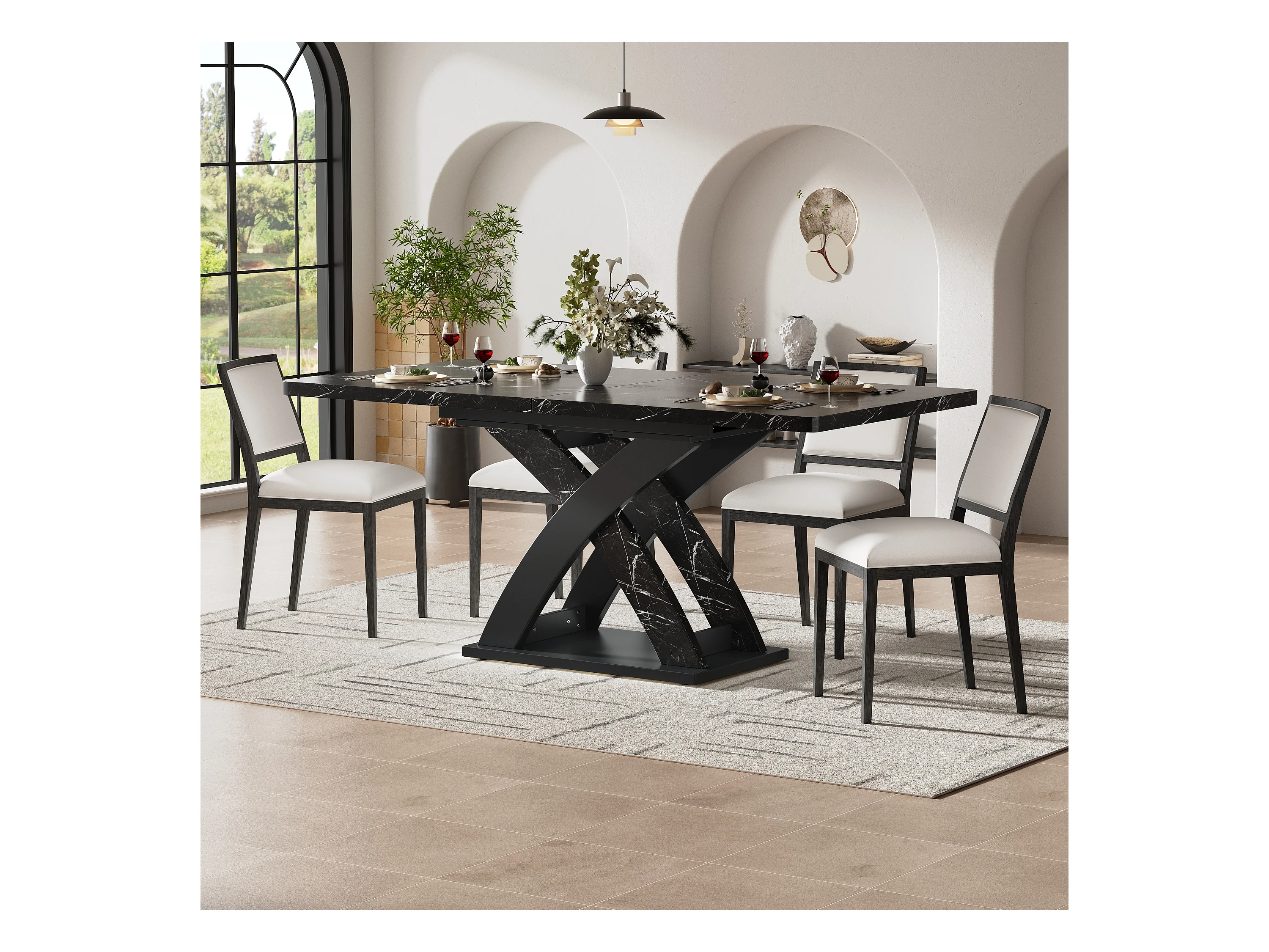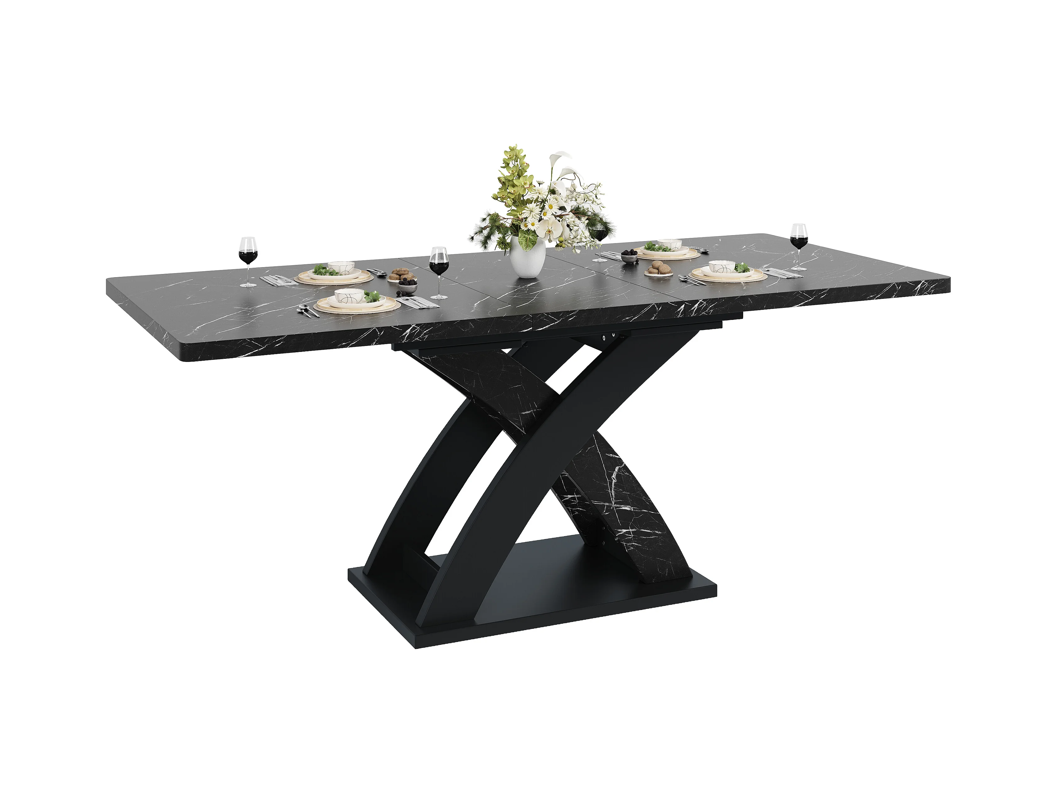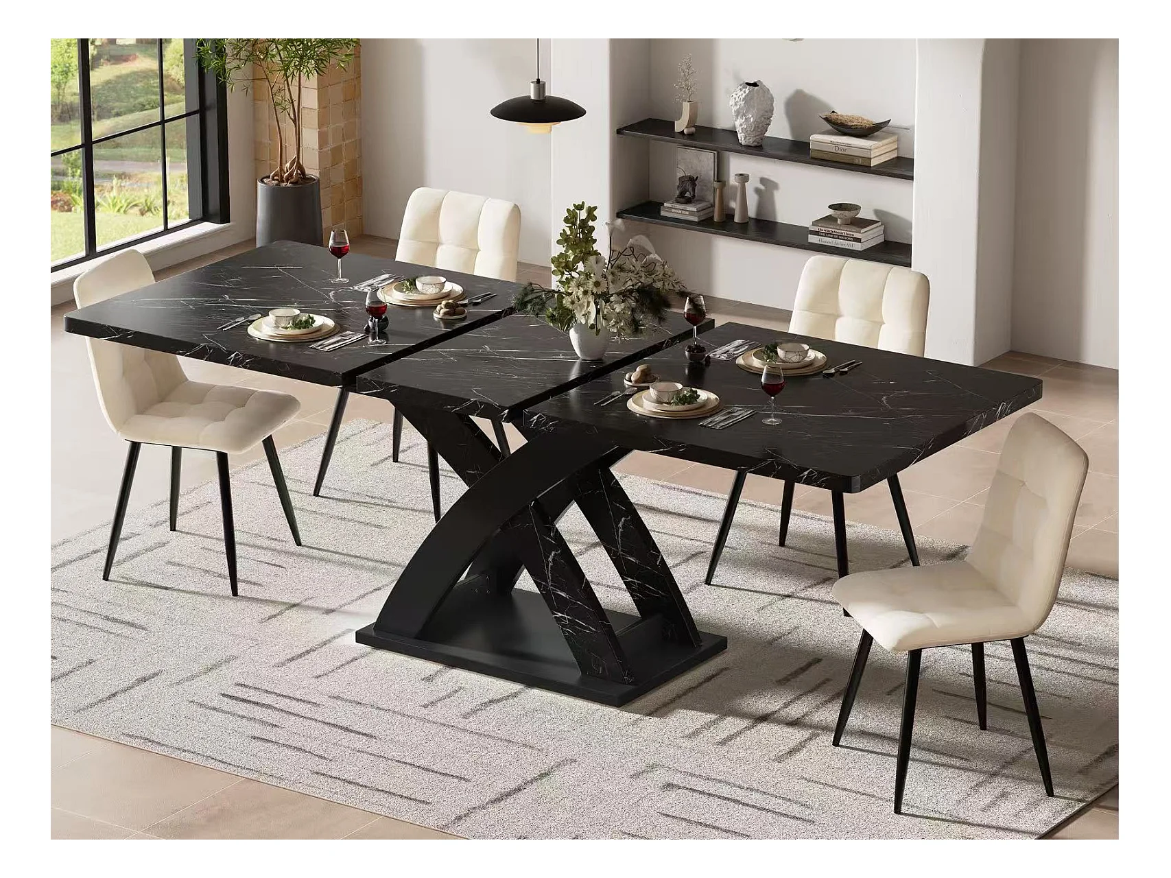Table à manger extensible 120-160x80x75cm - 6 à 8 personnes - MDF + métal - Noir