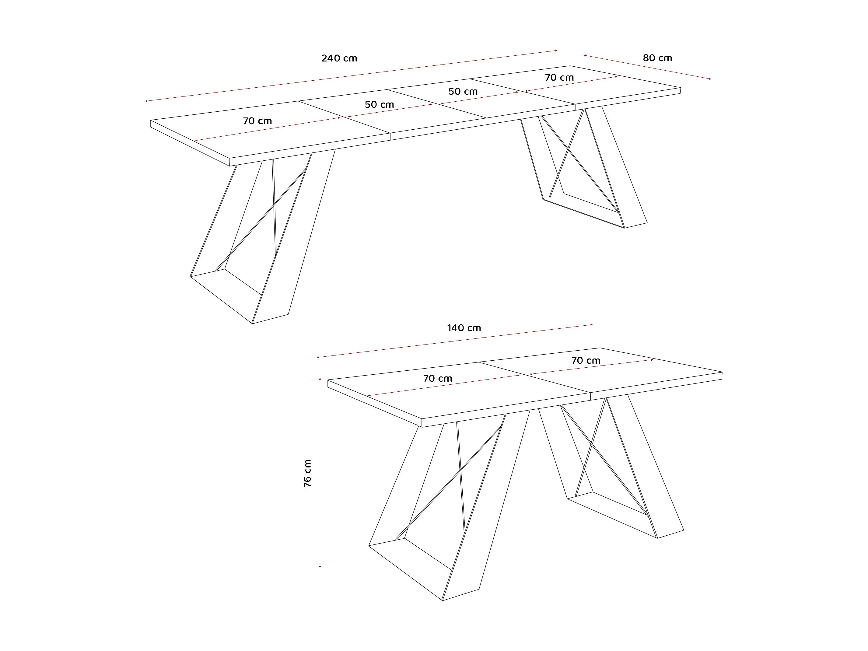 Table à manger extensible 140/240 en MDF, pieds en métal blanc, grigia pietra