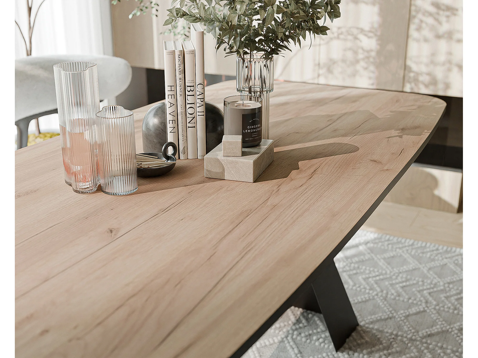 Table à manger extensible 160/198 en MDF, pieds en métal noir, chêne artisanal doré