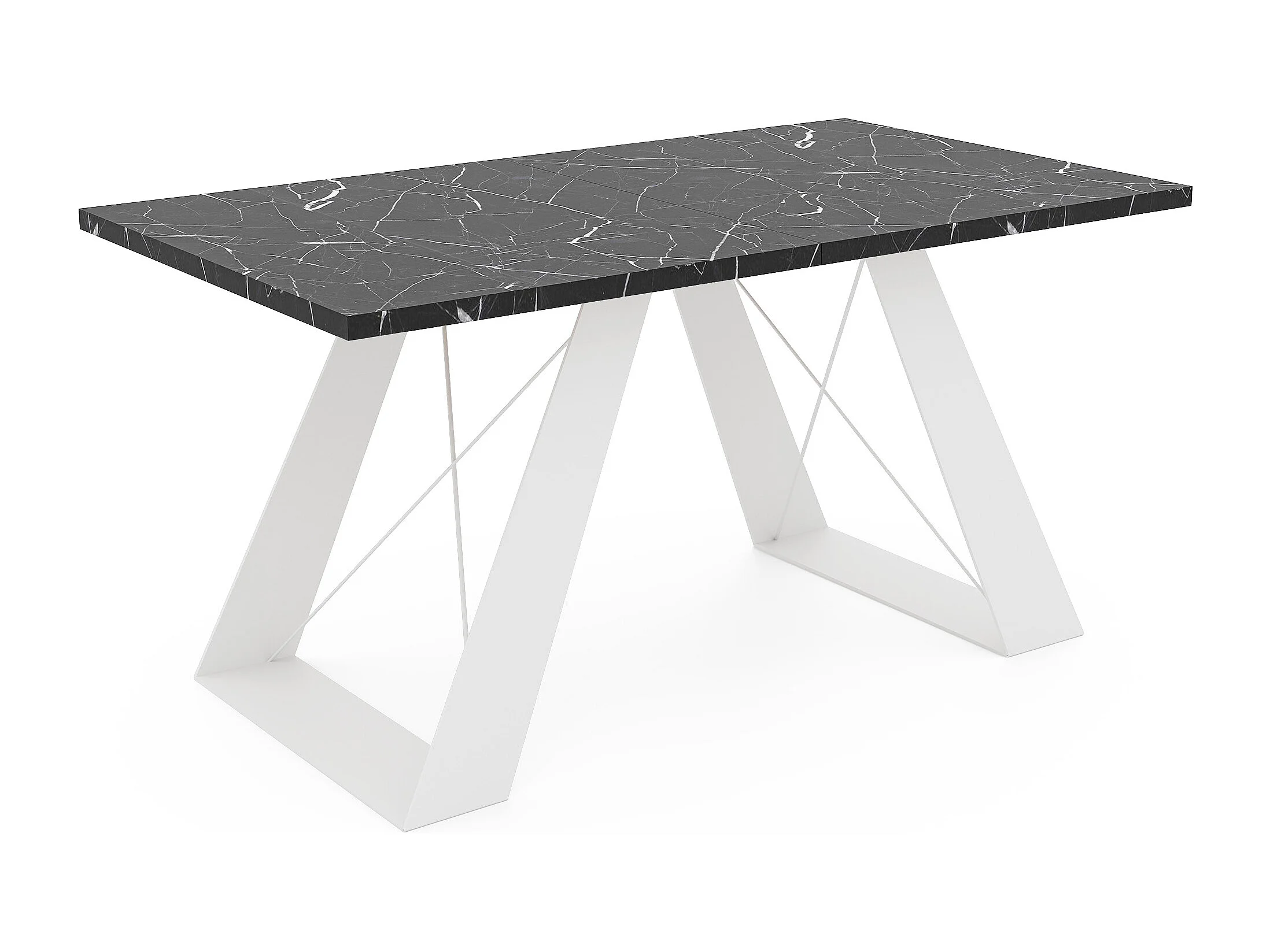 Table à manger extensible 160/260 en MDF, pieds en métal blanc, grigia pietra