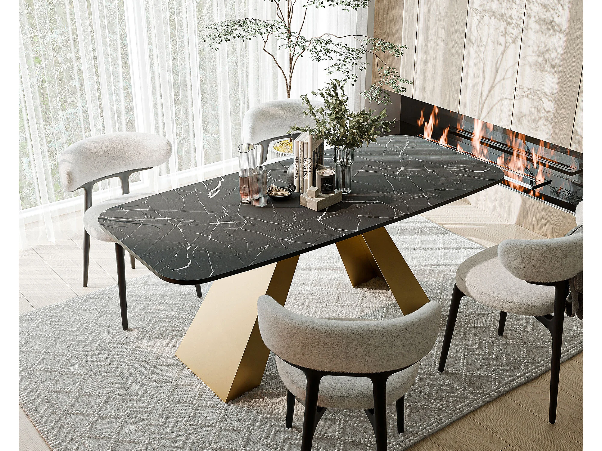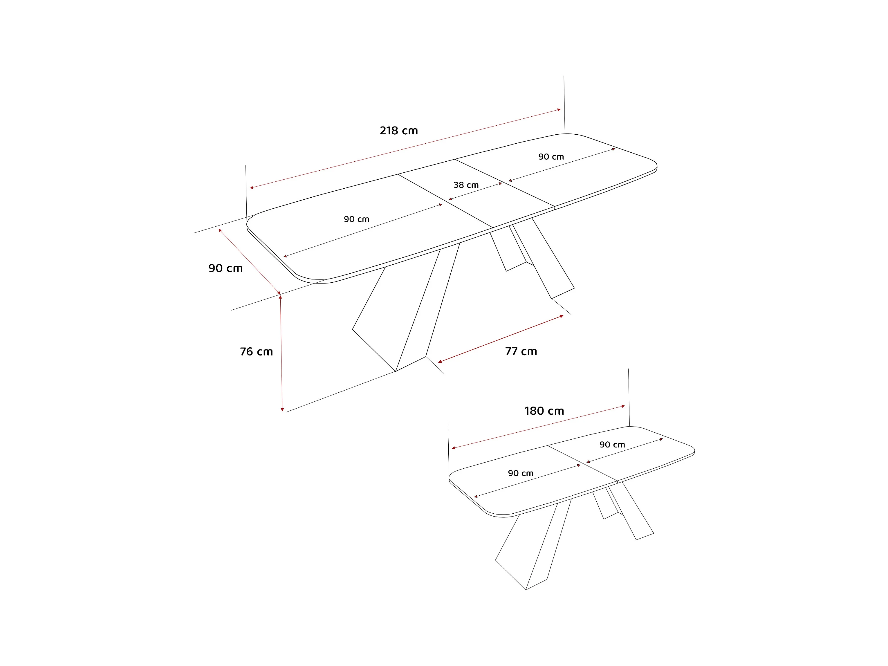 Table à manger extensible 180/218 en MDF, pieds en métal doré, grigia pietra