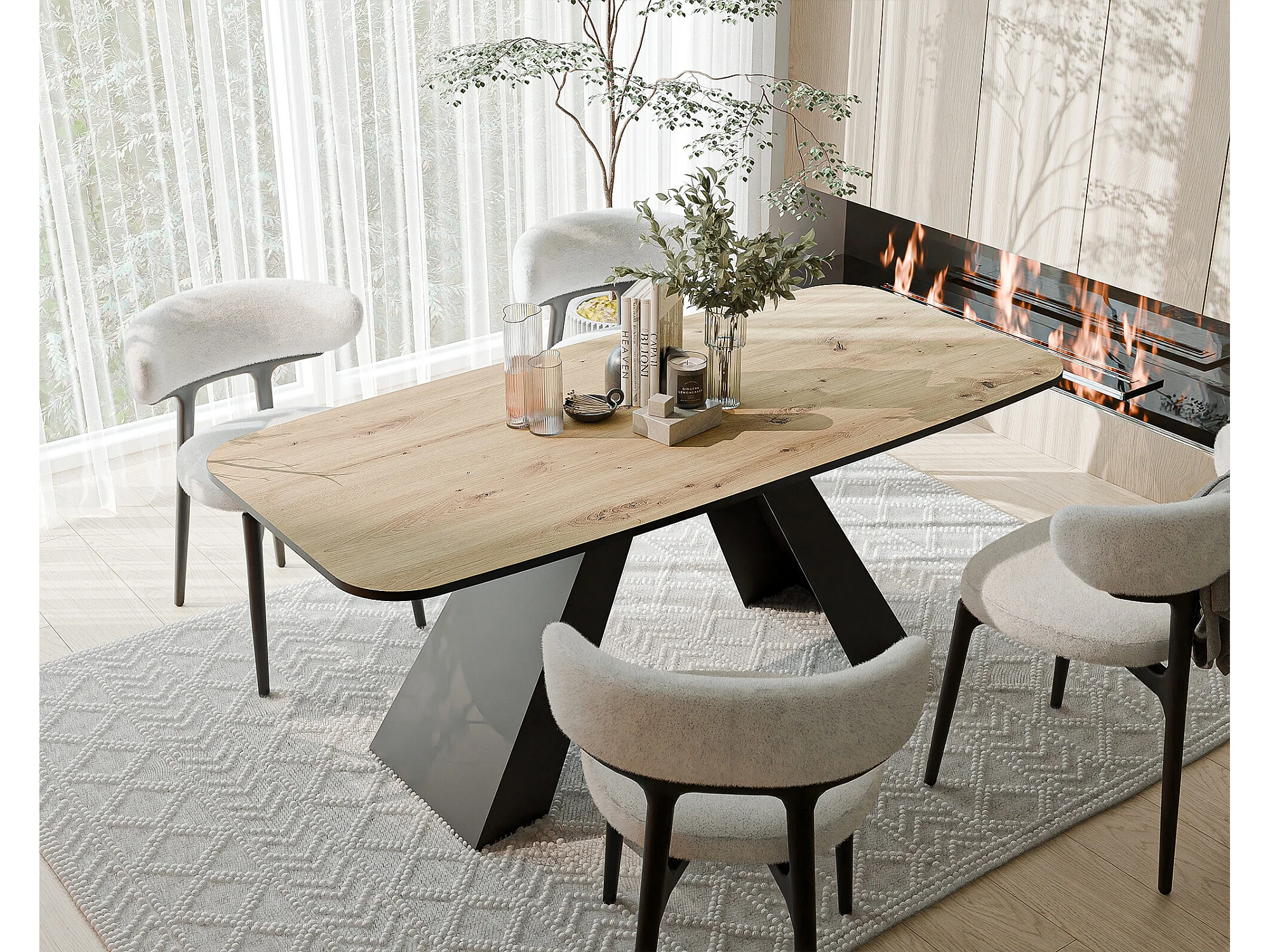 Table à manger extensible 180/218 en MDF, pieds en métal noir, chêne artisanal