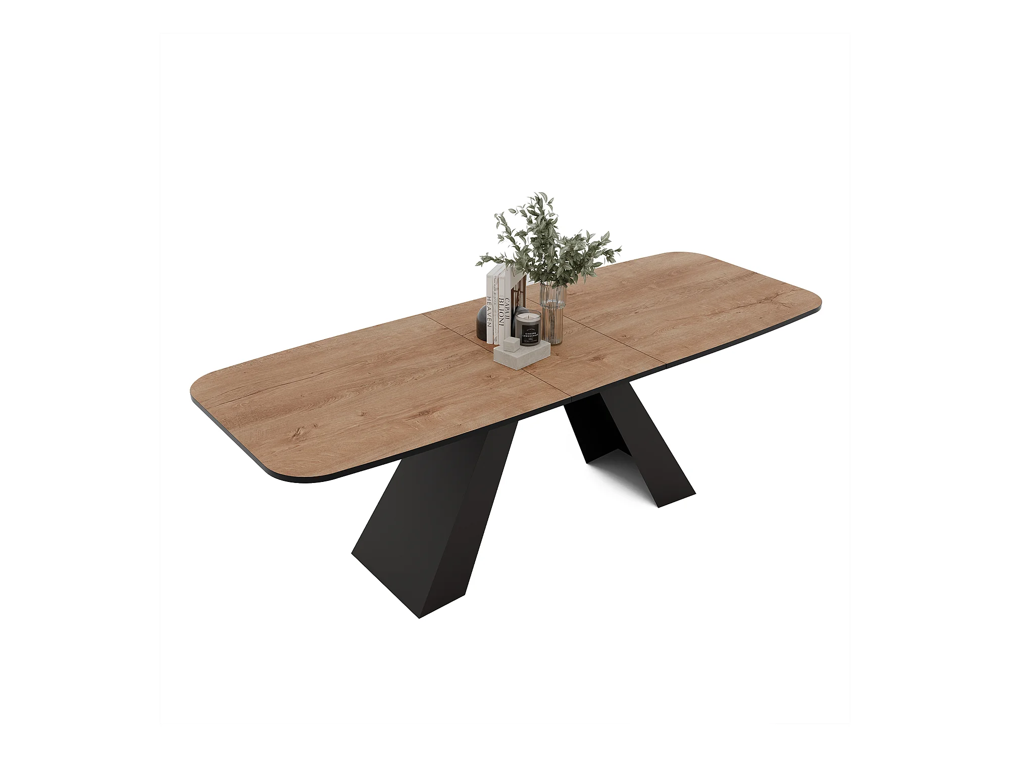Table à manger extensible 180/218 en MDF, pieds en métal noir, chêne de Lefkas