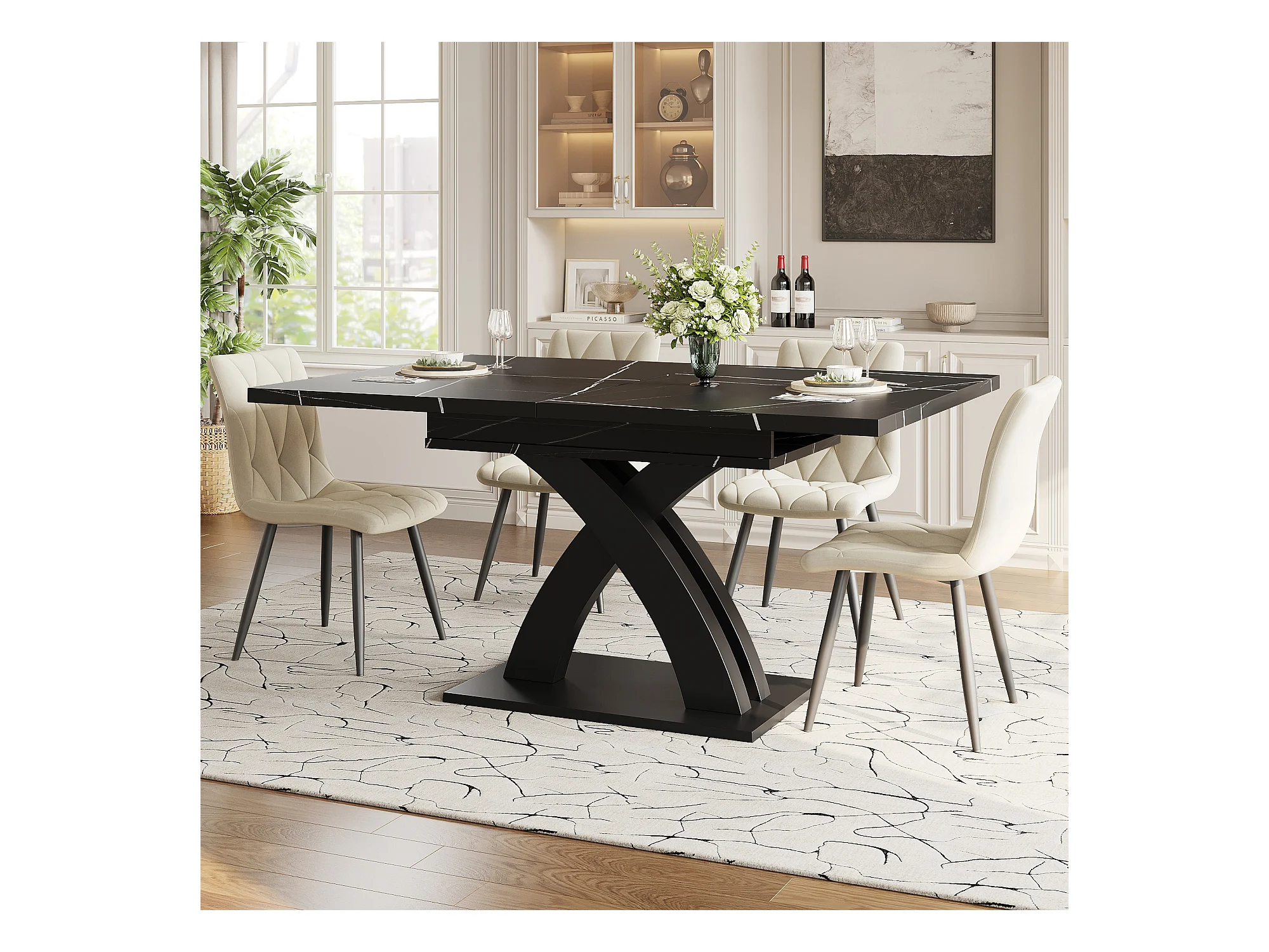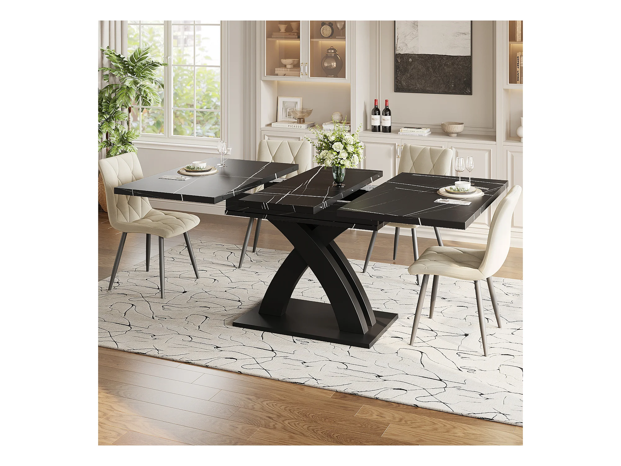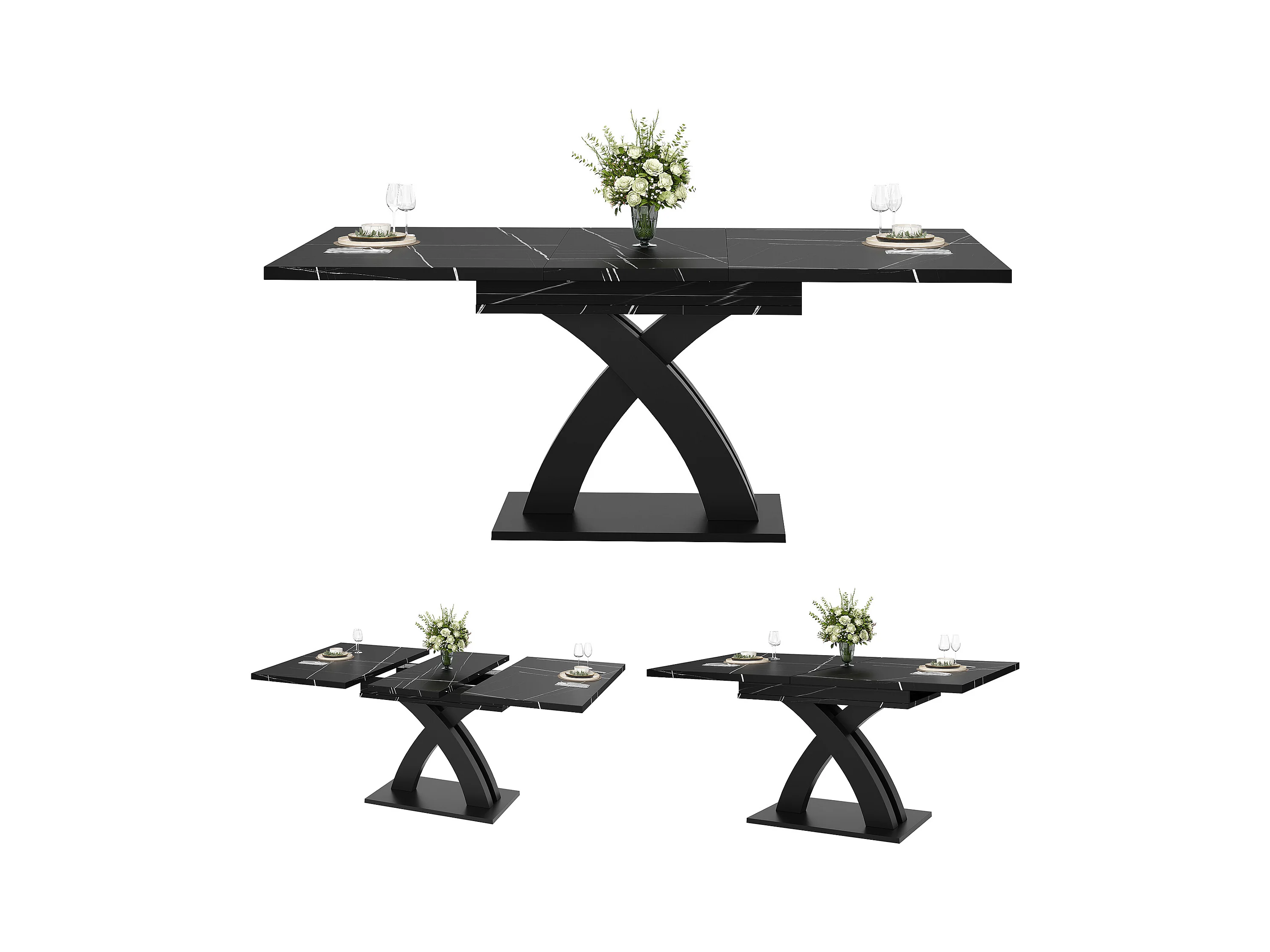 Table à manger extensible 6 places - 120/160 x 80 x 76 cm - pour salles à manger et cuisines - MDF + métal - noir